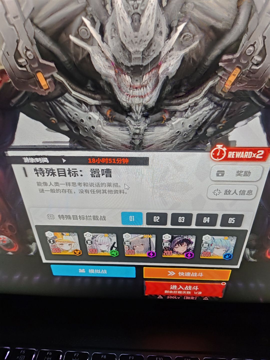 #胜利女神攻略 首先哈,现在目前大家刚刚出村有4.3万战力就能打特殊拦截而特殊拦截,五阶段出t9装备但是,就咱们目前这个练度,打是打不过的,别说t9,你连三阶段都难打到,又怎么能熬到56789阶段拿神装呢 现在能给大家来一期取巧,偷鸡流打法,今天是喧嚣,这个特殊拦截boss是最好打的几个boss之一,但我们现在没练度打起来很难受 1.如果你有贝斯蒂,那去哔站看教程,拿个五六七阶段应该不难,但如果