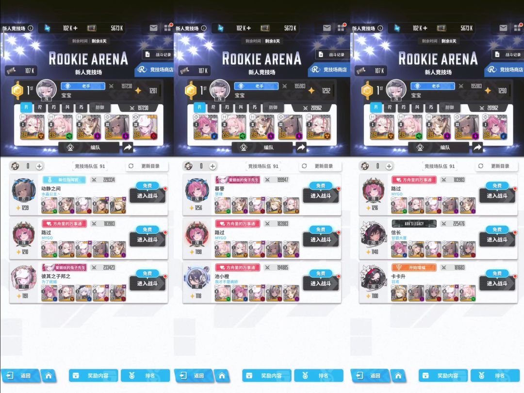 当然,新人竞技场本质只是踩头图一乐,没有钻石收益的玩意儿,乐呵乐呵就好。 什么?你问我特殊竞技场?这玩意儿在守不在攻。你周边范围都是比你低战的对面会打你?但凡你选择了扎堆,别人看你是这个区间战力最低的,人家不打你打谁? 再说了特殊竞技场收益差距也不大,不会真有人指望靠特殊竞技场获取钻石吧? #胜利女神 #胜利女神攻略 #胜利女神新的希望 #胜利女神豺狼 #胜利女神竞技场配队