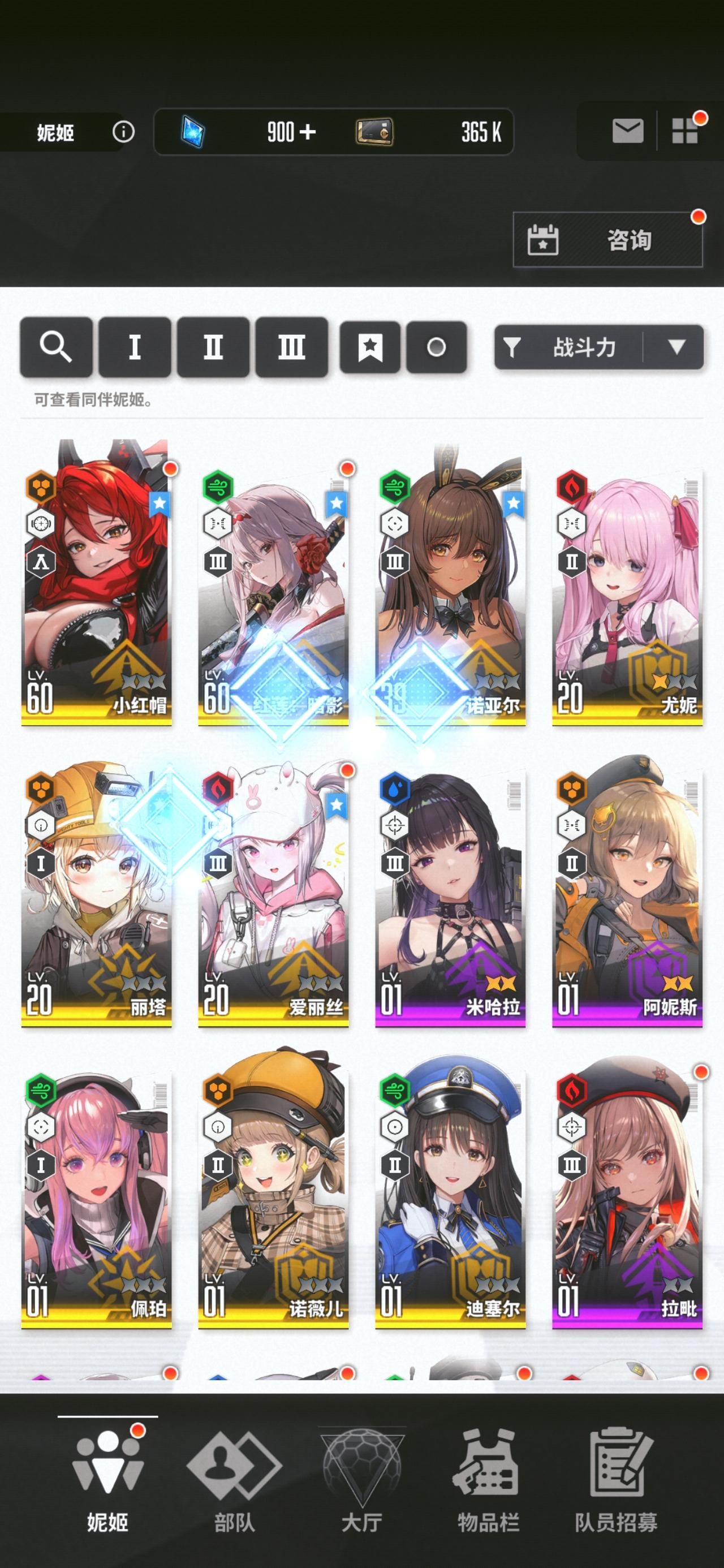 新号,目前的box这样,想问几个问题1.看强度榜应该是暗莲,小红帽,丽塔,黑兔,爱丽丝比较强,这几个组一队怎么样?2.然后应该养谁呢,因为看别人说,马上黑白jk跟皇冠要出了,要留资源啥的。3.需要继续抽暗莲进阶吗,因为是新号,所以应该还有蛮多资源可以拿的