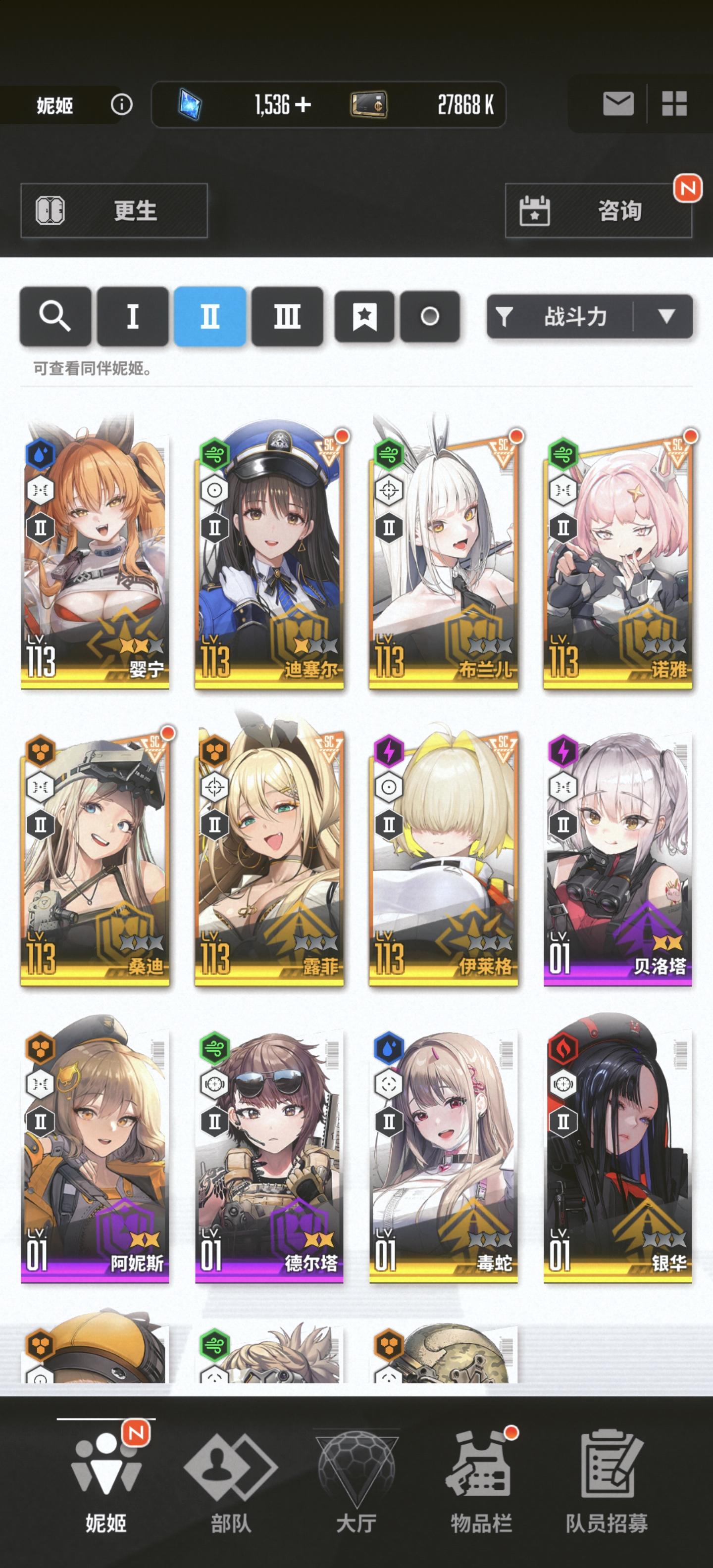 目前只有这些角色,有一个新年自选,是换黑兔补齐黑白兔,还是等黑白jk,礼盒留着突破160级补星。钻石有4万,金票有200。可以梭哈黑白jk然后金票留着换皇冠吗。打特殊拦截经常2 3星,角色扛不住。是不会玩还是角色练度低。