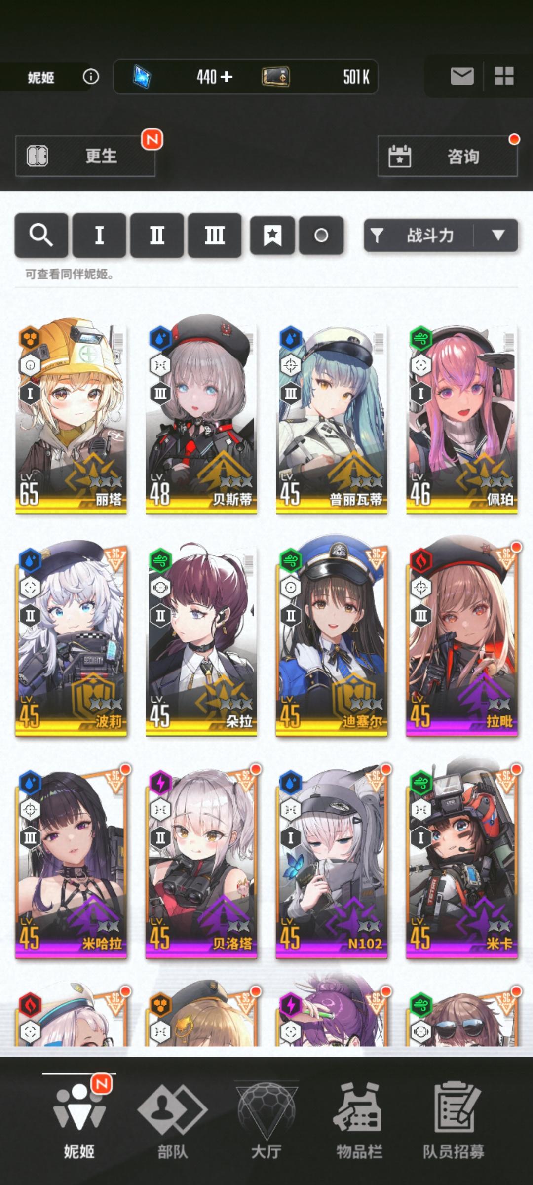 最近战力没什么长进,准备养二队了,马上盟突又要来了这三个队就将就用着了没法子,角色不多,也没资源养。