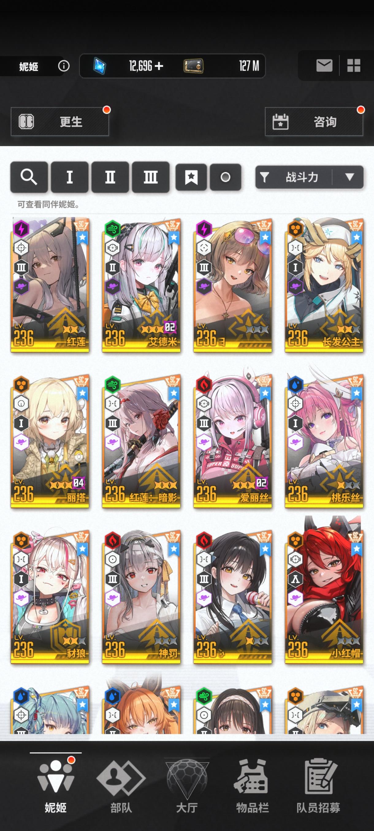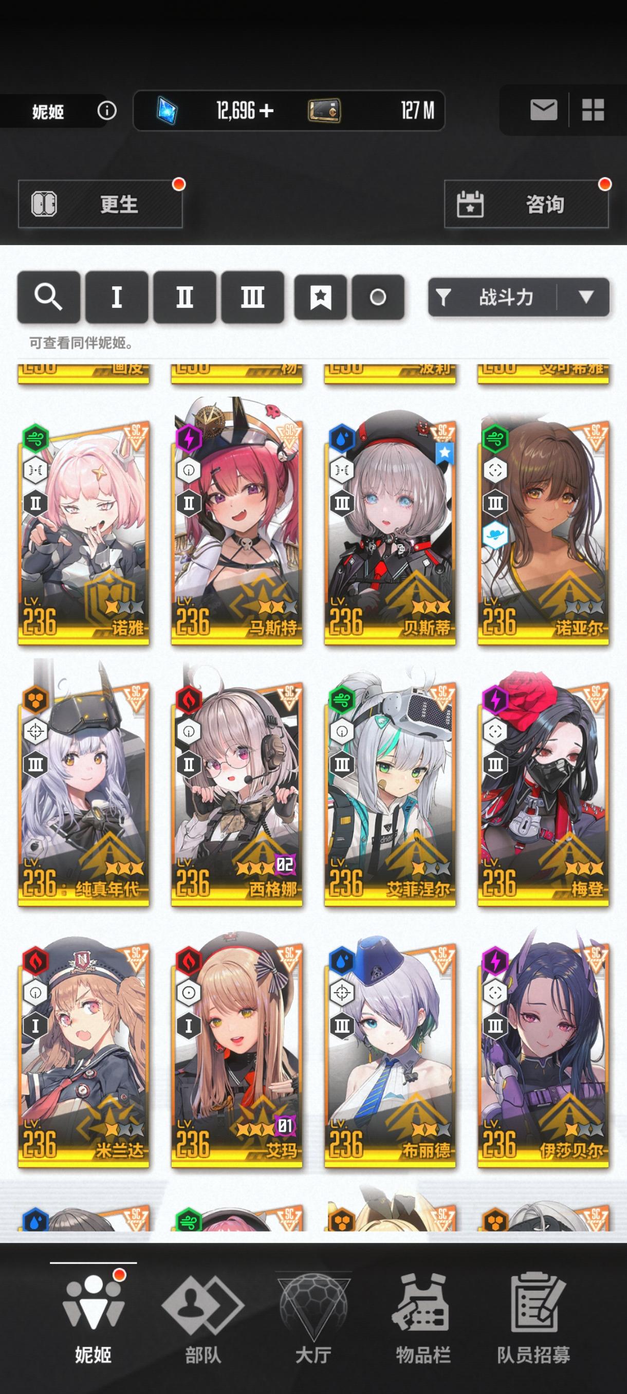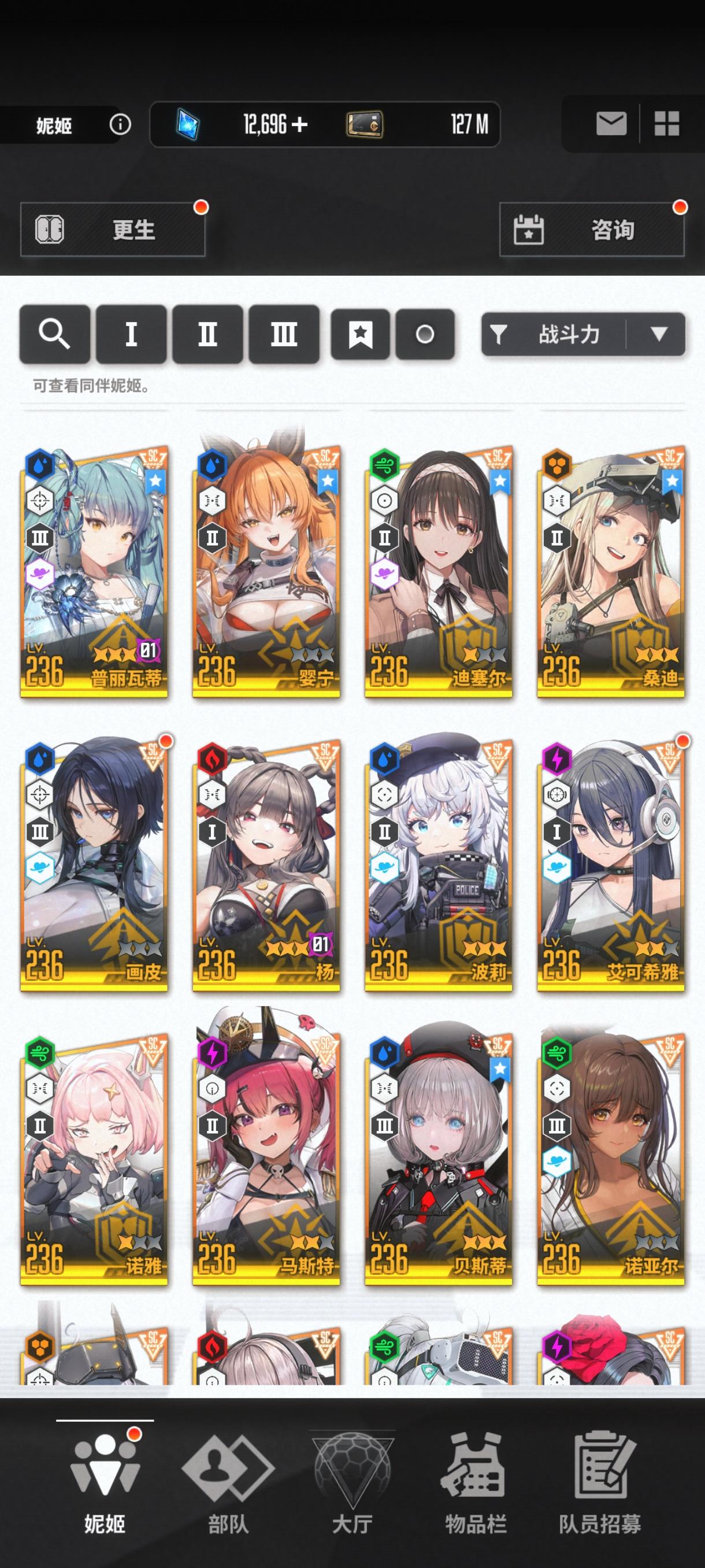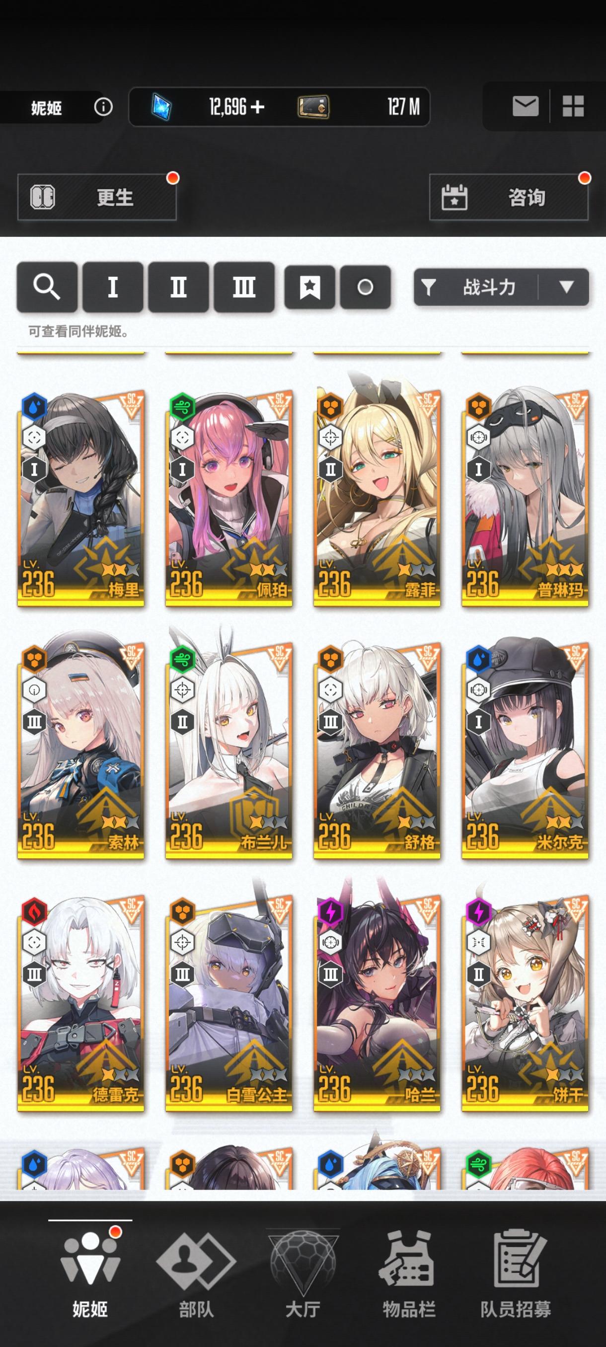 目前就这些角色,新年自选没用,是换黑兔还是留着突破160,还有过几天的黑白jk值得100抽不。现有资源将近5万钻石,190金票。现在特殊拦截神罚能到9阶段拿奖励,昨天那个火车累死到4,打不掉那些零件,经常被那个绿色导弹打死。掘墓上次打到7。目前队伍是丽塔 艾德米 黑莲 爱丽丝 普利瓦蒂,合理吗。