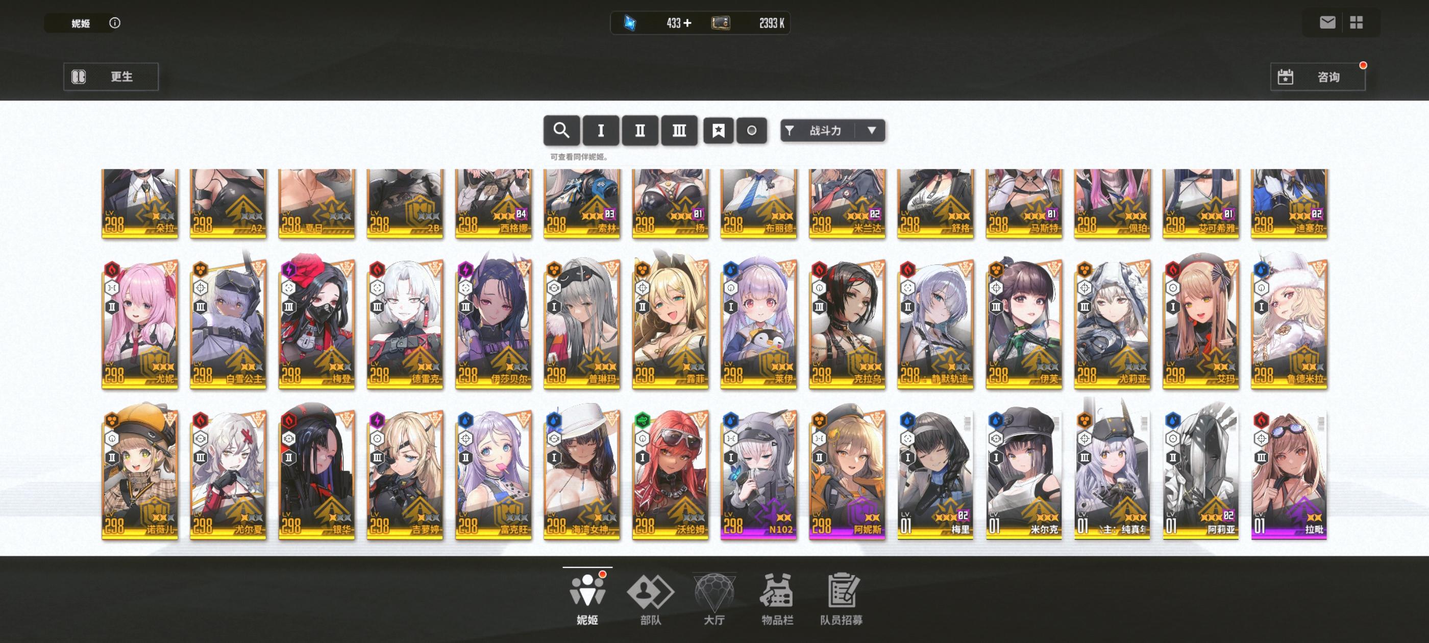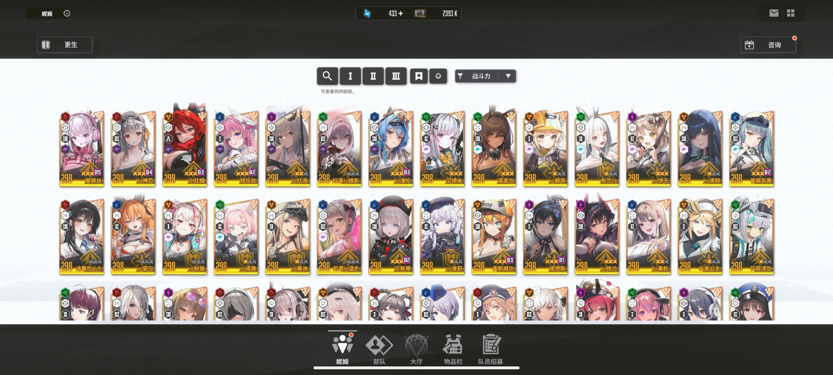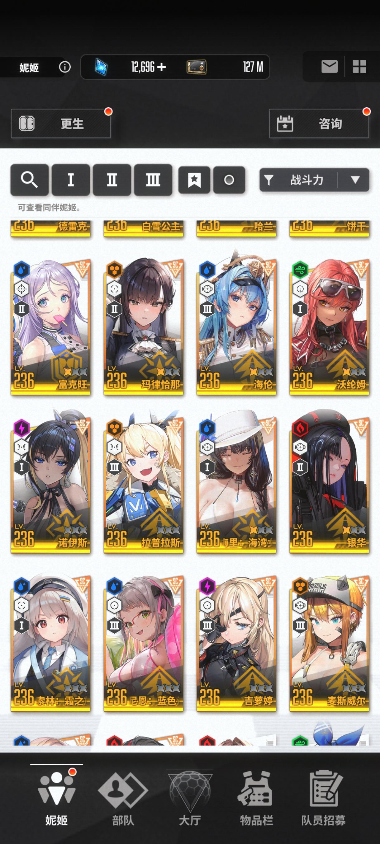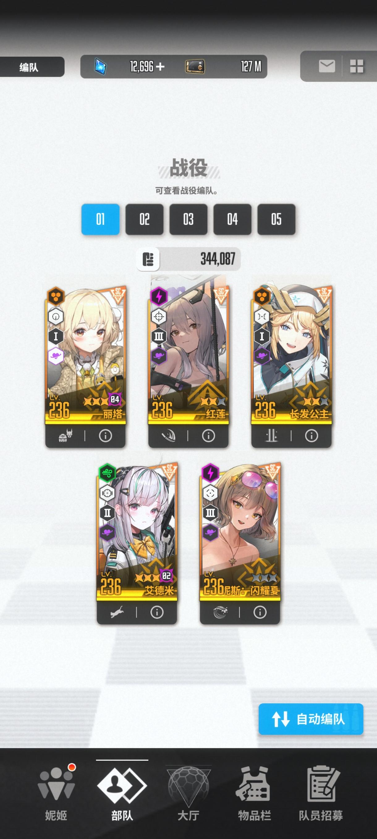 目前就这些角色,新年自选没用,是换黑兔还是留着突破160,还有过几天的黑白jk值得100抽不。现有资源将近5万钻石,190金票。现在特殊拦截神罚能到9阶段拿奖励,昨天那个火车累死到4,打不掉那些零件,经常被那个绿色导弹打死。掘墓上次打到7。目前队伍是丽塔 艾德米 黑莲 爱丽丝 普利瓦蒂,合理吗。