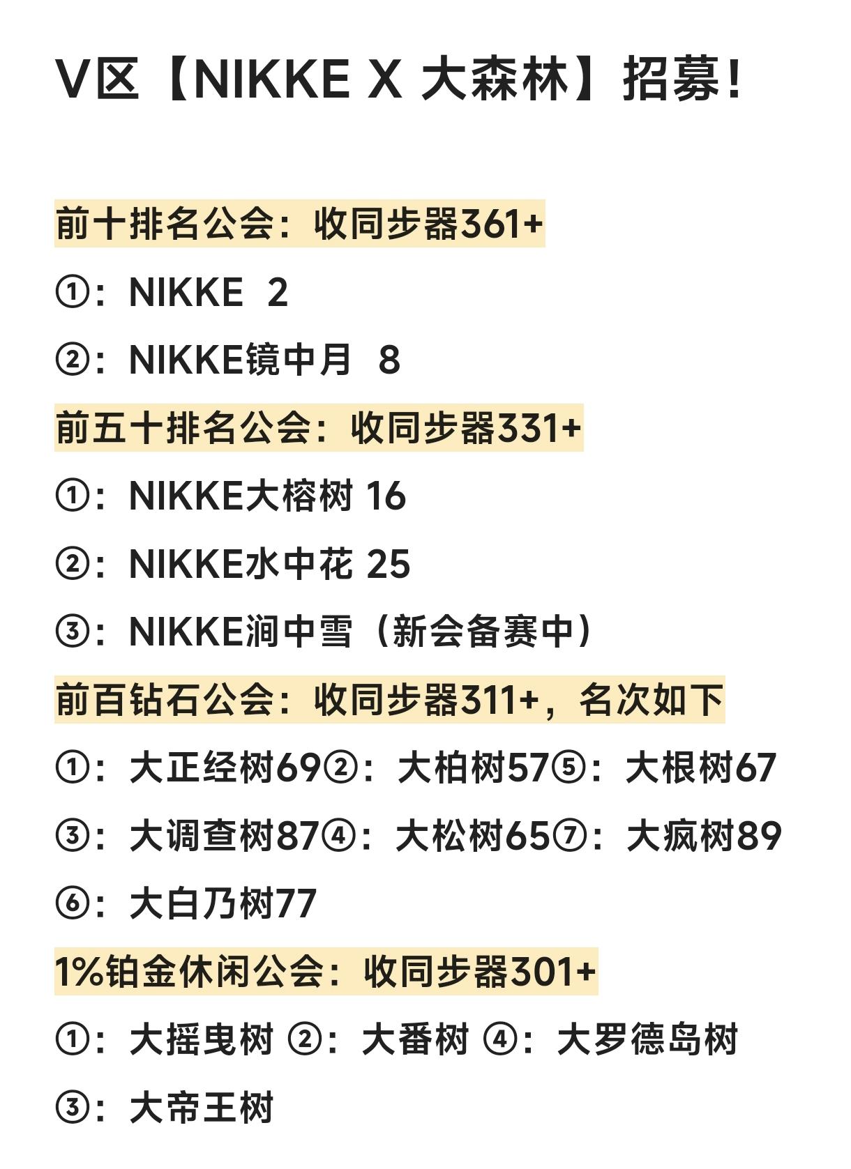 VX区超大联盟,《NIKKE X 大森林》,15家公会,新赛季招募啦,符合标准的小伙伴们可以滴滴滴滴我哦