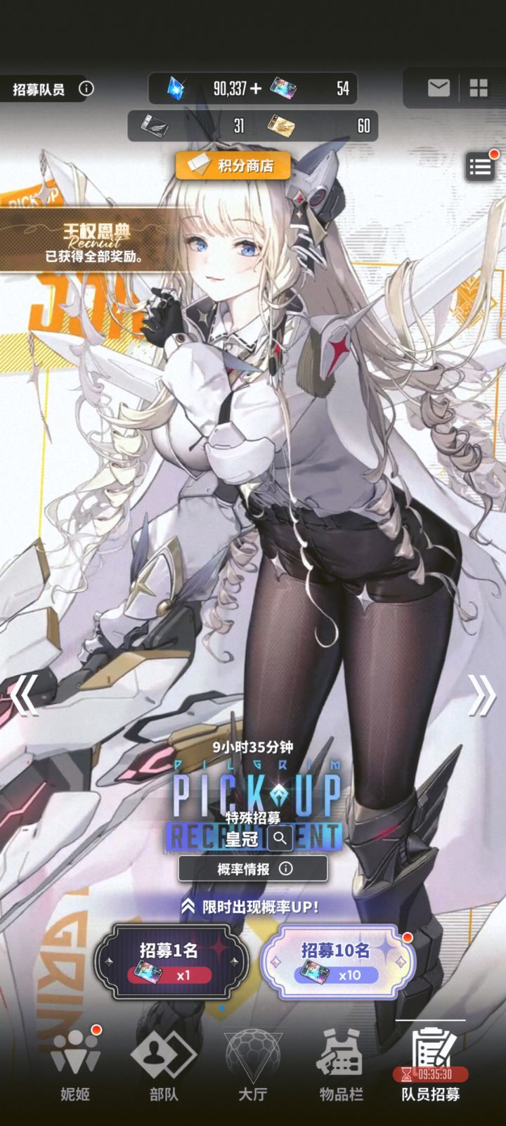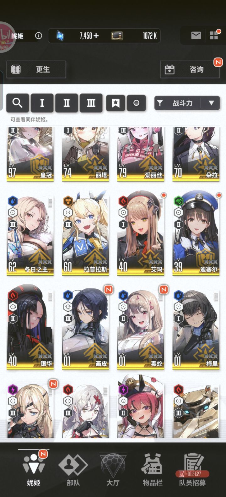 看来以后的福利节奏,就是零氪一年可以抽一个MAX妮姬,同时不错过强力妮姬。红球箱快1万个了,也不知道什么时候开始新主线,等那么一两年追平国际服我要狠狠的用😋👍🏻当然还有常驻票,自从突破160后一直攒到现在,766张了,到时候狠狠的指定朝圣。估计1.5周年会追到那由他,现在就开始攒到那由他了。什么皇冠那由他,我两个都MAX不就行了🤤