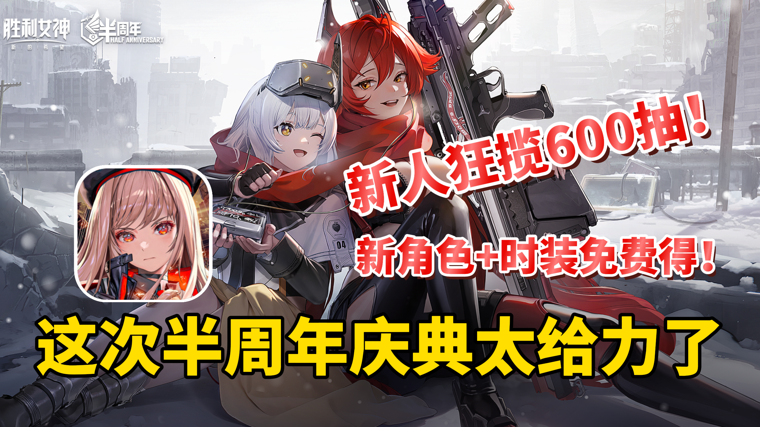新人半周年期间活跃最多可得600抽+新皮肤和5个SSR! 回归用户也可获得超300抽!这就是史无前例的入坑回坑好时机! 福利码: 胜利女神半周年庆 小红帽火力全开 画皮婴宁幽影随行 指挥官未来可期 #胜利女神半周年庆典 #游戏安利 #游戏推荐