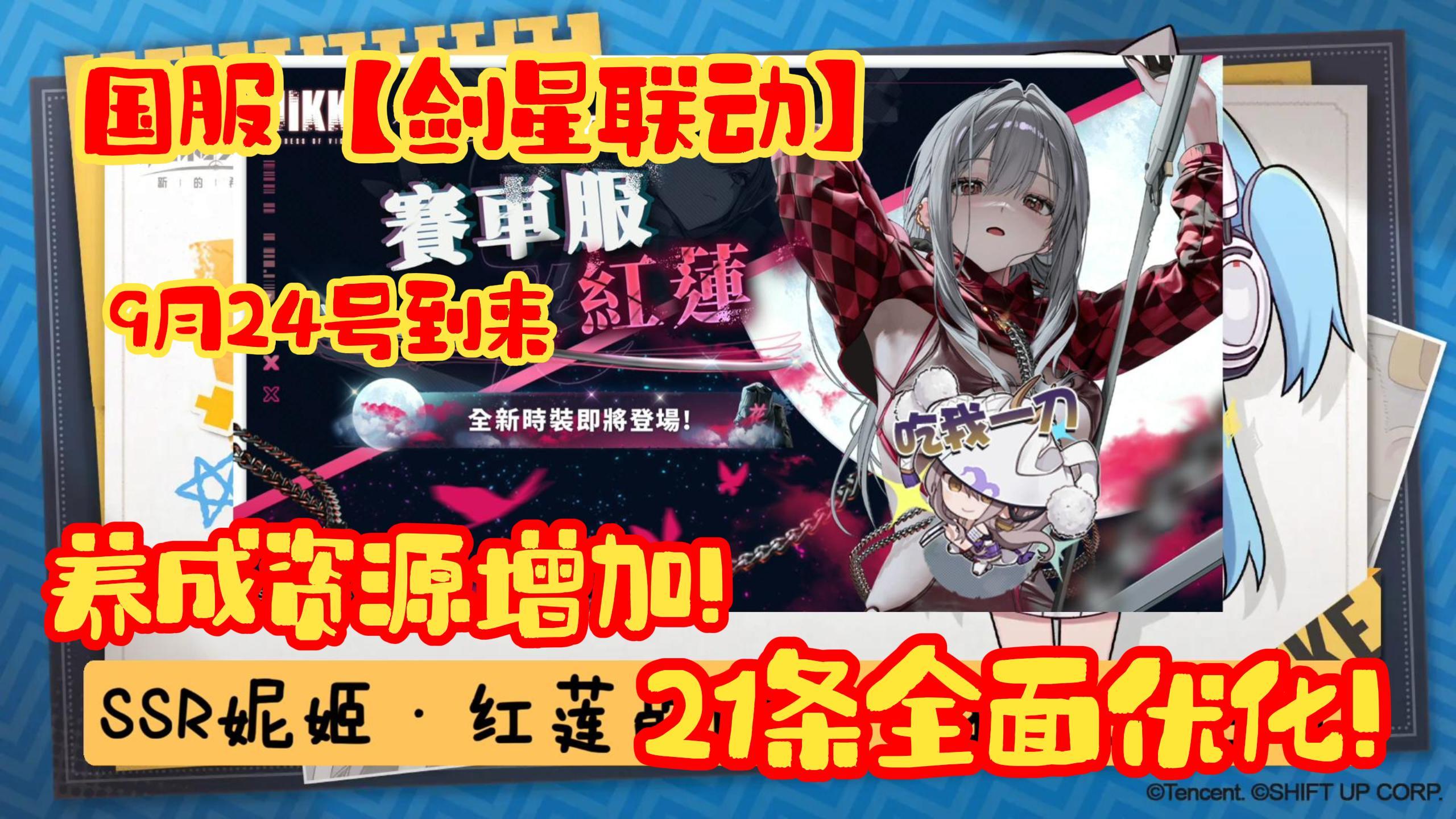 国服剑星联动于9月24日开始 同时更新21条游戏优化内容,帮助指挥官合理获取资源、减轻养成压力等,持续优化基础游戏体验,提升指挥官的乐趣追求! #胜利女神夏日版本 #nikke #妮姬 #胜利女神 #胜利女神攻略 #胜利女神新的希望 #前瞻 #剑星 #联动