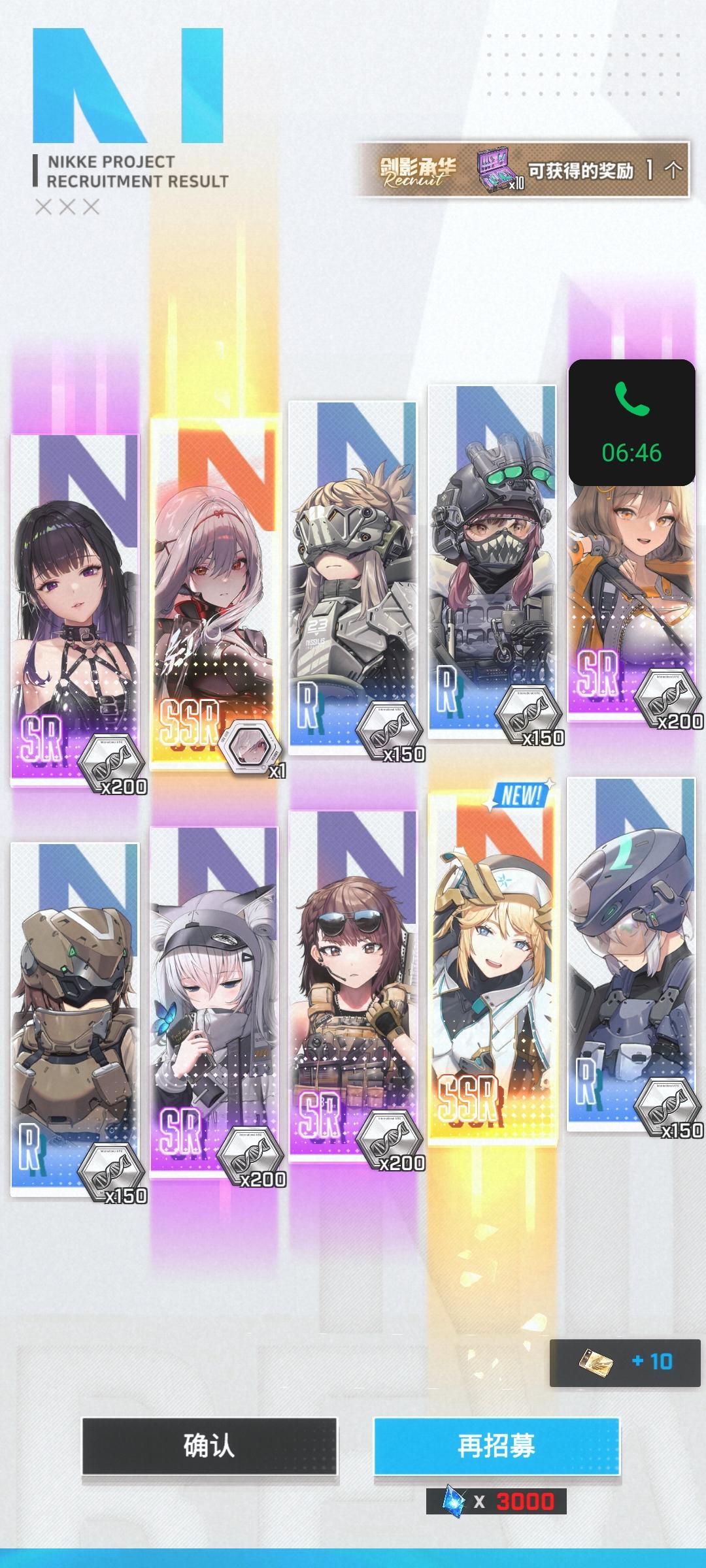 开服第二天全勤零氪党还剩159K钻石、1000黑票、1040金票,你们还剩多少?首充豪礼,首充双倍都在。桃乐丝免费22抽出2只,神罚免费100抽出2神罚、1红莲,水阿免费100抽3只,豺狼30抽,渡鸦70抽出1渡鸦、1红莲,伊芙20抽,红帽池700抽出5红帽、1桃乐丝、1神罚、1哈兰、1白雪、1伊莎贝尔,画皮免费10抽,婴宁免费10抽2只,迪塞尔50抽2只。抽卡欧,特拦黑,