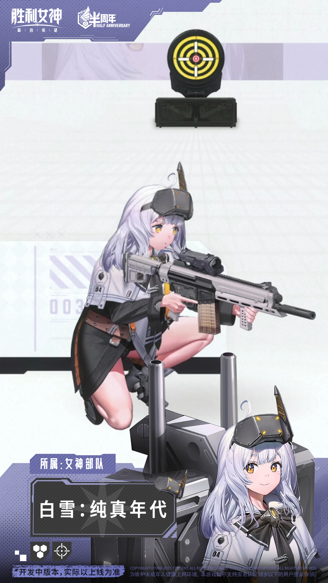 白雪公主:纯真年代◆定位:火力型◆使用武器:步枪-七个小矮人Ⅱ◆爆裂技能:大幅加强自身输出,进入无限弹药状态。大幅提升自身攻击力,减少被动技能触发所需攻击次数,并进入无限弹药状态。✦ 半周年庆典活动特别奖励送上!10月26日-28日期间,每日登录游戏即可通过邮箱领取特别奖励(高级招募券)三日合计可领取高级招募券*10!邮件每日12点发放,限时7天领取,请指挥官千万不要错过哦!✦ 《胜利