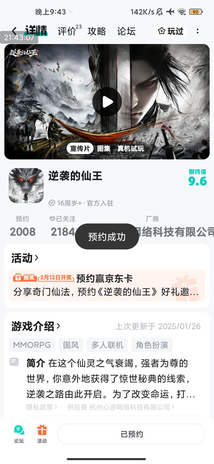 已预约,玩游戏的快乐也期待中奖