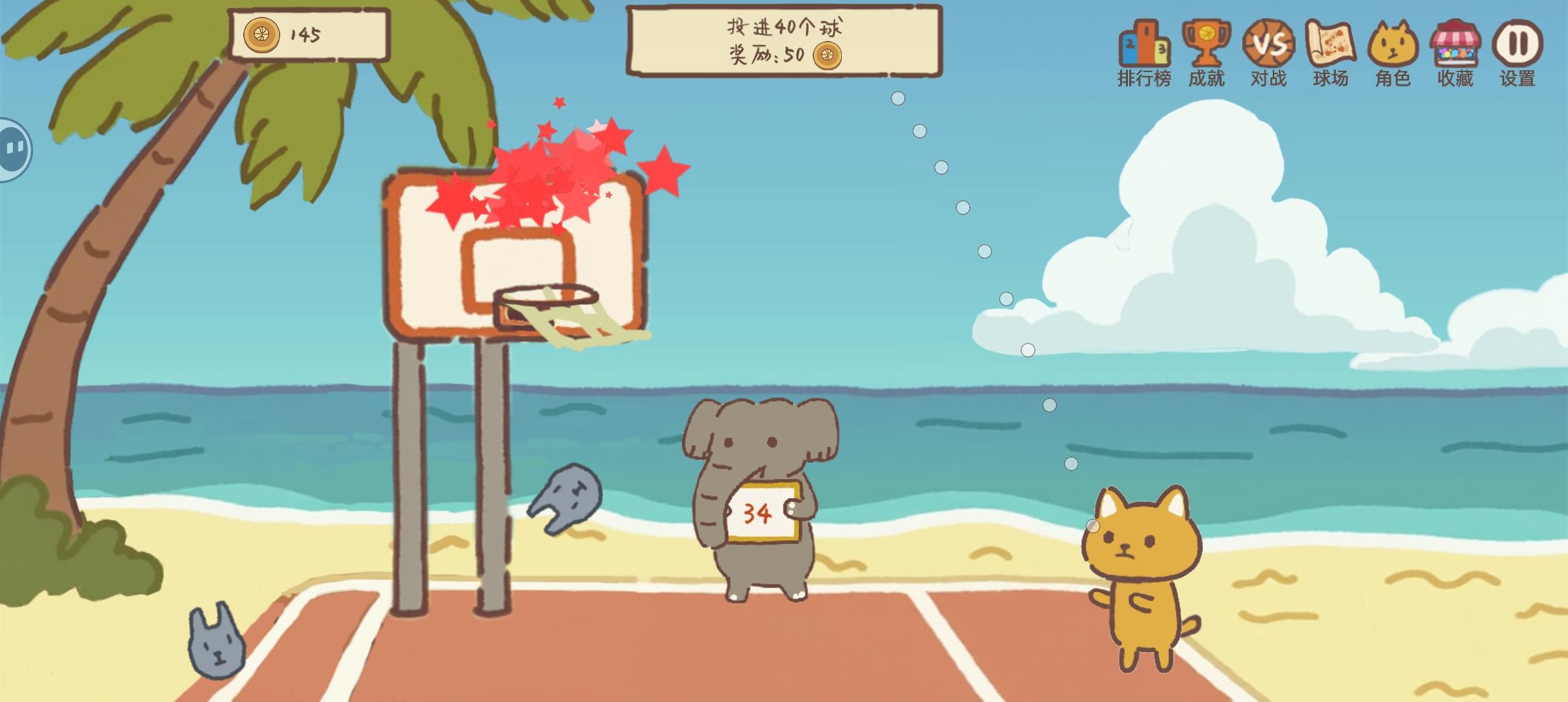 感觉挺好玩的,找准地方和力度能连续投中好几个😎,但有时候我也是偏点就投不准😌画面也很好😁篮球也不一样😆,声音配得也好,砸到篮筐会有声音,背景有海也会有海浪声🌊😍