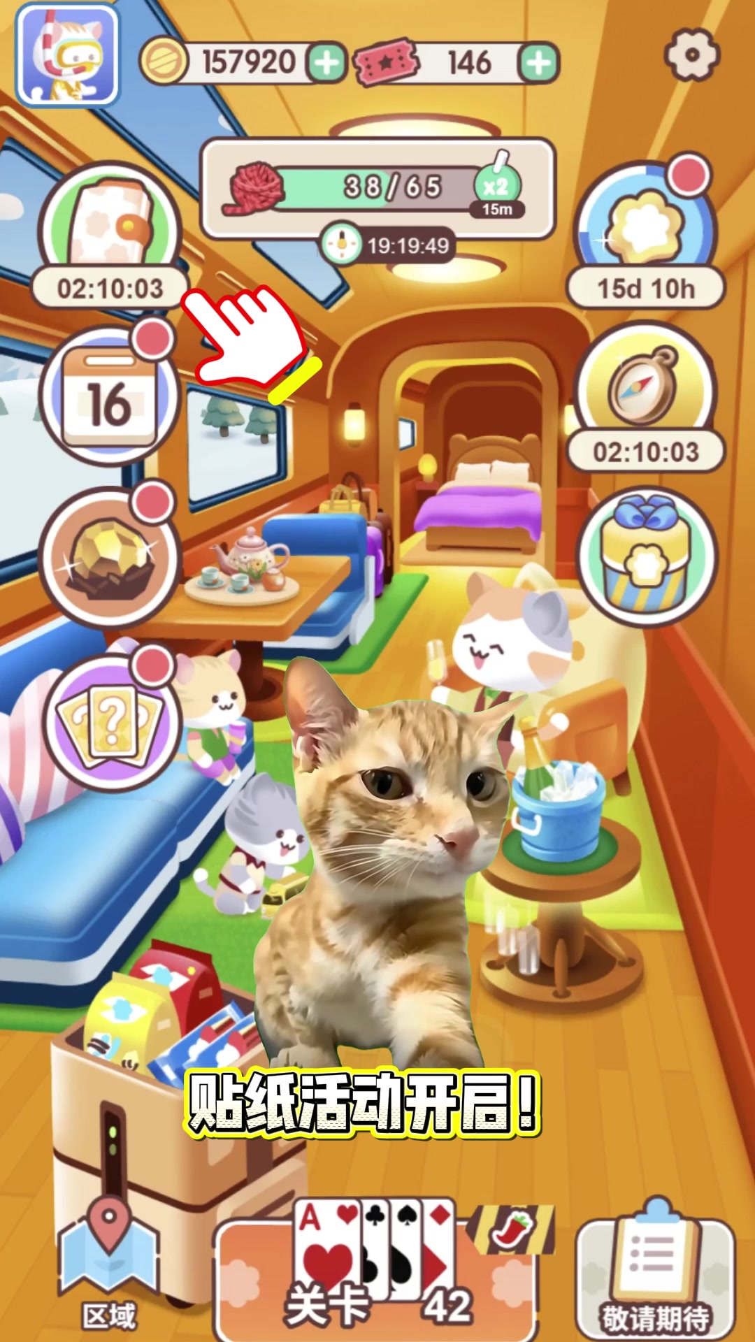 萌趣猫咪贴纸推理活动欢乐开启!🐱 通过接龙关卡🃏就能收集猫咪贴纸,闯关越多,贴纸库存越充足📦!将手中的贴纸精准放置🧩,匹配成功即可合体锁定🔒,就算暂时失误,也能通过你的推理来靠近答案🔍,每完成一个阶段都有惊喜奖励解锁哦!还有终极大礼🎁正等待完成逻辑推理解锁全部奖励的你! 每周两期循环开放⏰,推理乐趣不打烊~ 快来和猫咪一起开启一场趣味十足的脑力大作战吧!#猫咪纸牌 #休闲游戏 #纸牌接龙 #发现好