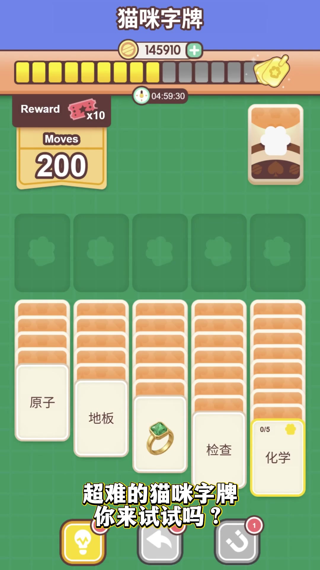 不多说直接上干货,默认进来是中文版,设置里面切换到英文(还有十多种语言),再回到单词游戏就是英文卡牌了! #猫咪纸牌 #单机游戏 #发现好游戏 #浅评一下 #游戏日常