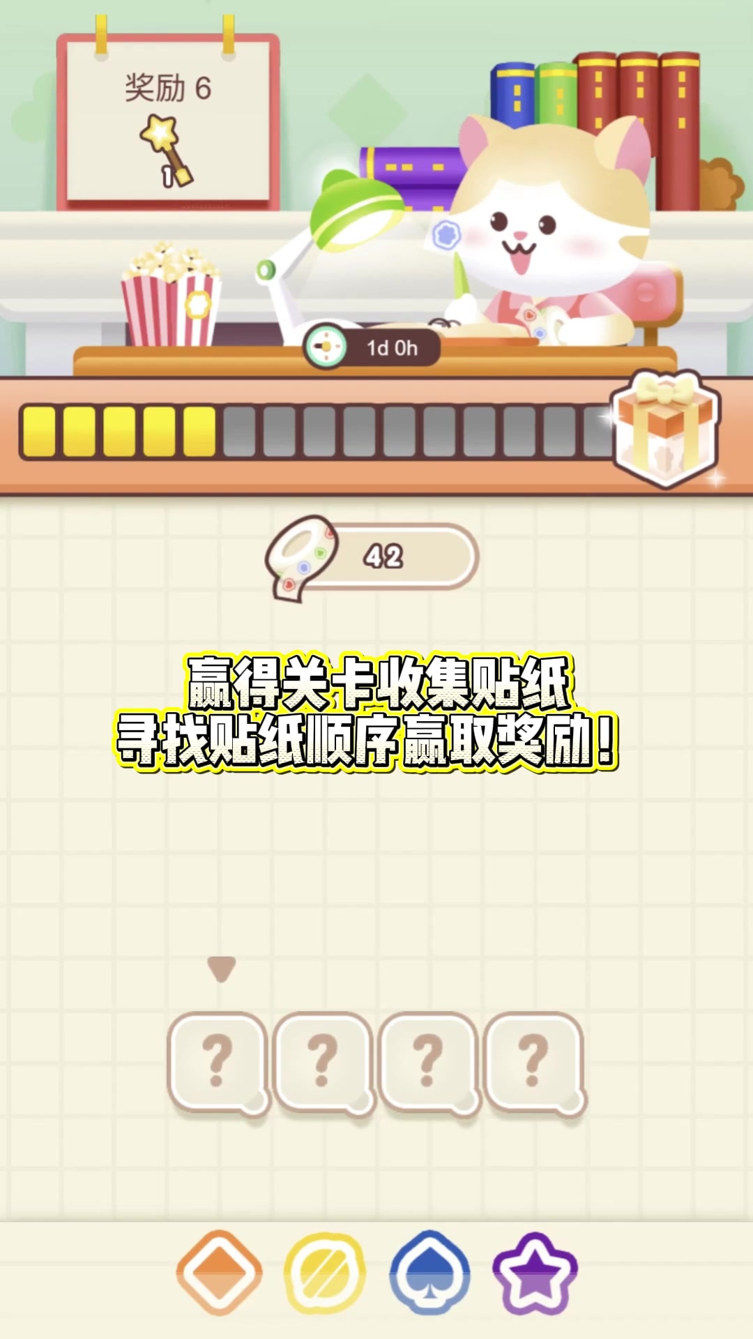 萌趣猫咪贴纸推理活动欢乐开启!🐱 通过接龙关卡🃏就能收集猫咪贴纸,闯关越多,贴纸库存越充足📦!将手中的贴纸精准放置🧩,匹配成功即可合体锁定🔒,就算暂时失误,也能通过你的推理来靠近答案🔍,每完成一个阶段都有惊喜奖励解锁哦!还有终极大礼🎁正等待完成逻辑推理解锁全部奖励的你! 每周两期循环开放⏰,推理乐趣不打烊~ 快来和猫咪一起开启一场趣味十足的脑力大作战吧!#猫咪纸牌 #纸牌接龙 #休闲游戏 #发现好