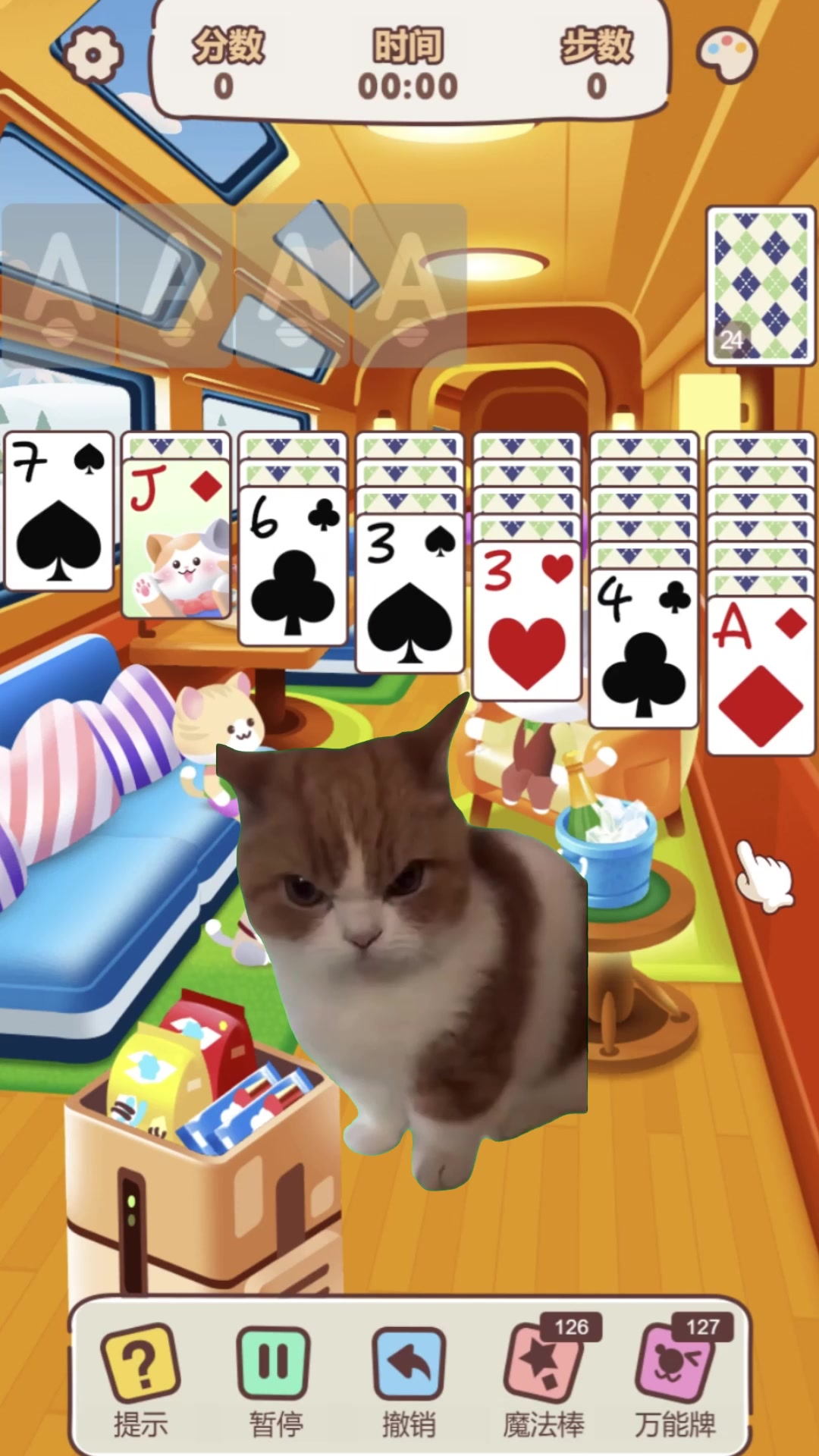 当你沉浸在紧张刺激的牌局中,局势却突然陷入僵局😣—— 牌堆里你急需的关键牌 比如能让某一花色顺利接龙的 A,或是能完美填补空列的K,迟迟不肯露面。 此时,界面中的魔法棒就成了你打破困境的希望之光✨! 只需轻轻点击魔法棒道具,它便会像神秘魔法师一样,瞬间从牌堆中抽取一张牌。这张牌大概率就是你苦寻不得的关键牌,它一出现,原本停滞的牌局立马就能重新顺畅起来,帮你轻松通关~😼#猫咪纸牌 #纸牌接龙 #休闲