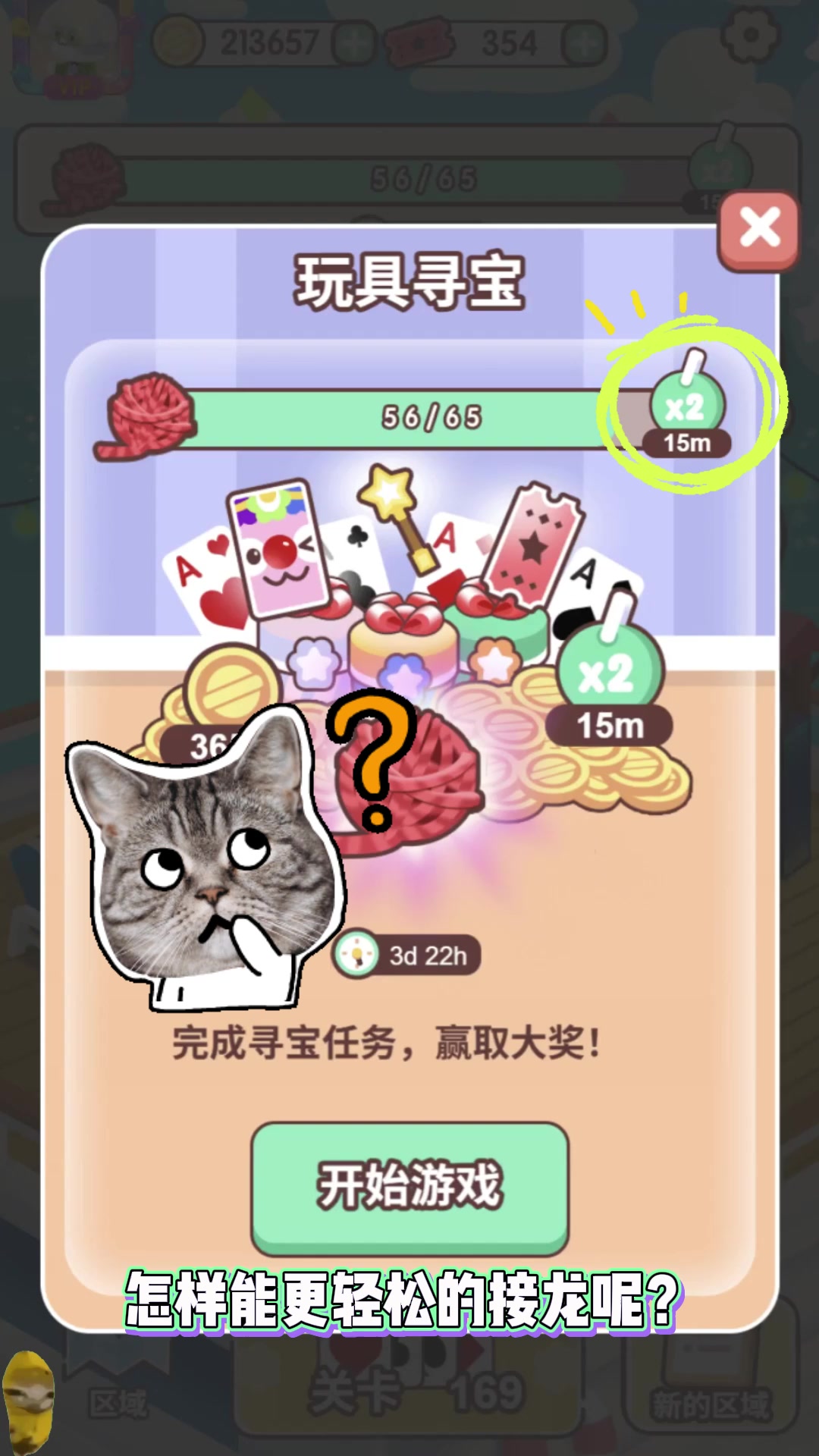 玩具寻宝活动里,完成每日任务🎯、挑战趣味关卡🎮,就能收集毛茸茸的毛线球🧶或铃铛🔔~ 攒够指定数量,就有机会把双倍奖励Buff✨等限定道具抱回家! 这个Buff超给力,15分钟内接龙闯关,金币💰和活动经验值📈统统翻倍,奖励拿到手软~快冲呀!#猫咪纸牌 #休闲游戏 #纸牌接龙 #发现好游戏