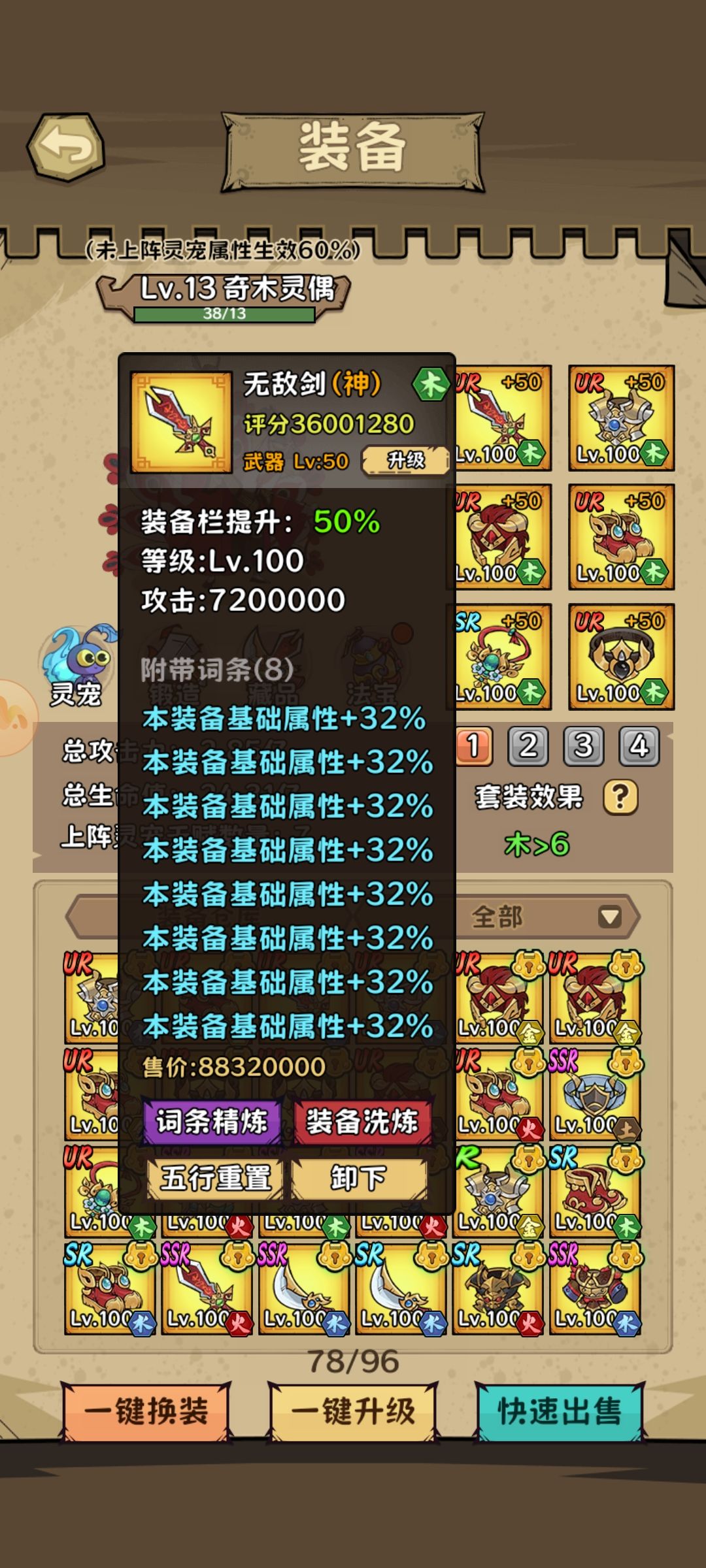 最近群里来了很多萌新也问了很多问题,统一写个攻略帮助新玩家渡过前期剩下的也好自己摸索。先说推图吧一上来尽早推到55章可以做一百级装备,目前装备上限100级,基础属性最高攻击600w,血量6000w,属性高的装备可以锁定留着。精炼后能达到720和7200w不过这是后面才需要弄的了。至于怎么推,这游戏提升最大的是丹药,但是丹药有时间限制,在左上角丹药可以看到,建议第一天先买几个丹药(闯关会有弹窗)争取