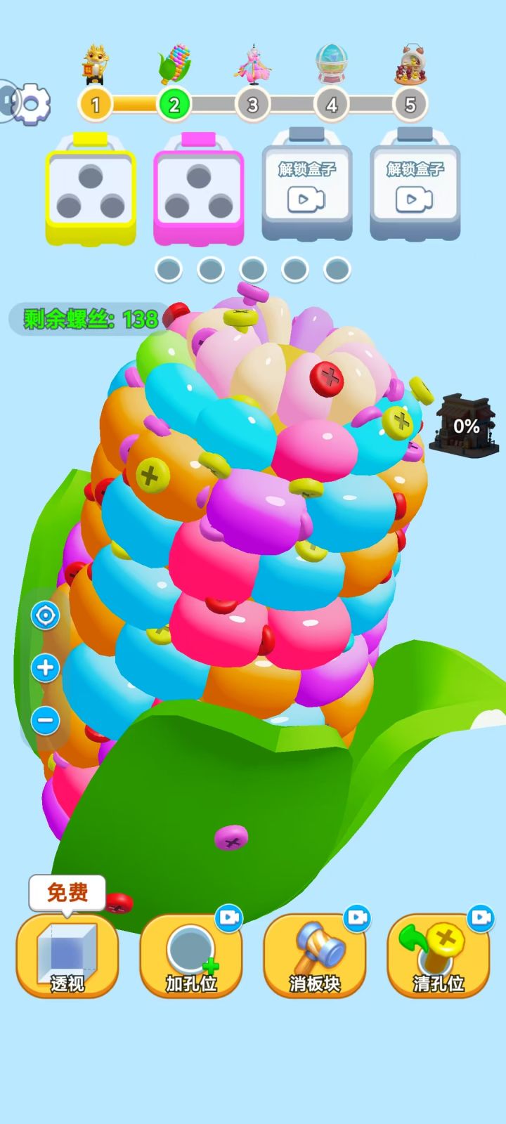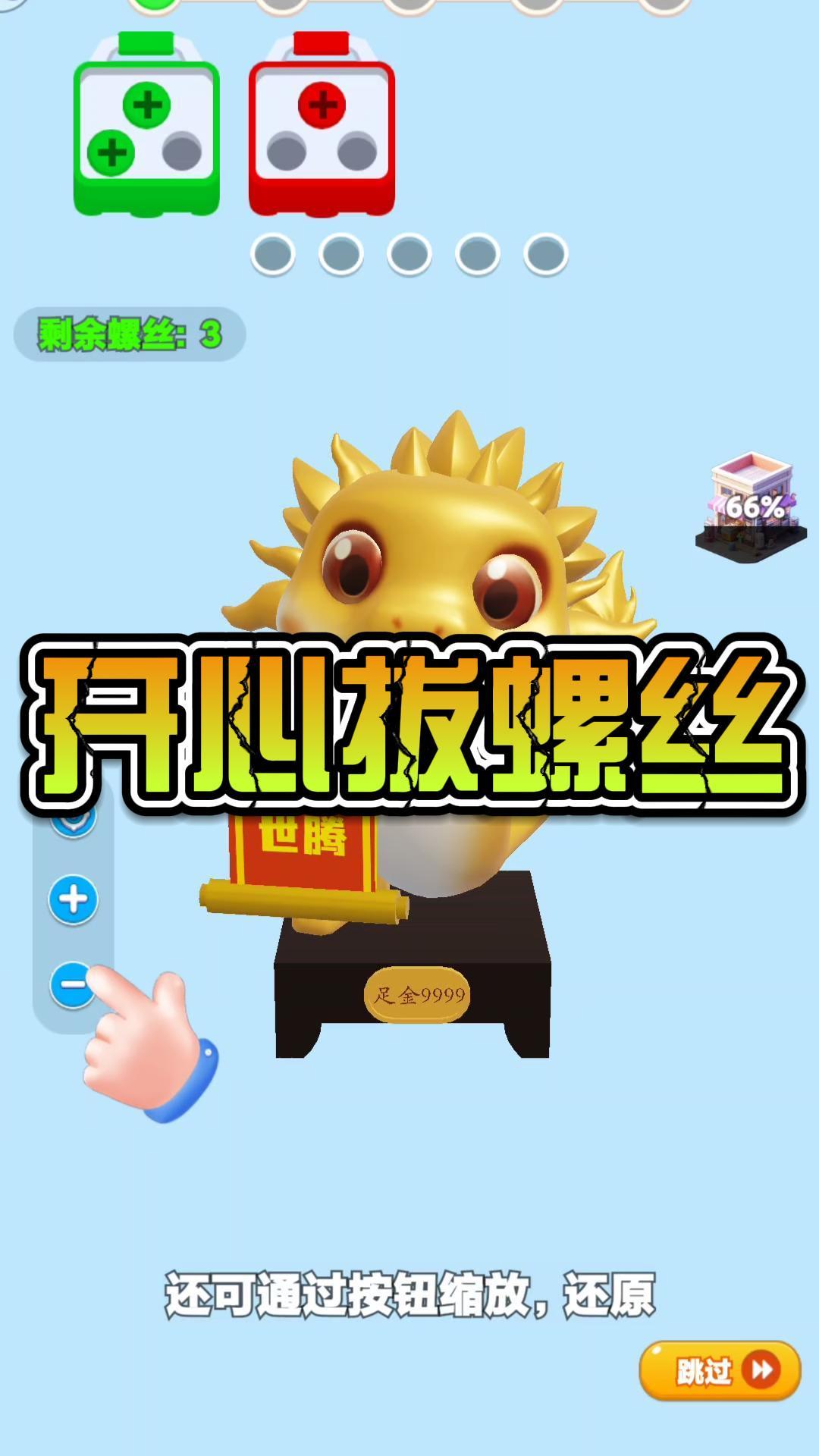 《开心拔螺丝》一款超级解压的小游戏推荐给大家,今天才上线,不到200M的内存,目前还在测试阶段,玩了好几关感觉还挺有意思的,推荐给大家!玩法很简单,拔掉所有的小螺丝就可以顺利通关,第二关的大玉米直接给我整密恐了感觉有点像3D版本的羊了个羊,考验观察和策略能力,不是单纯的爽玩,一咪咪难度,通关有一些小小的成就感,不错不错#游戏种草计划 #游戏安利