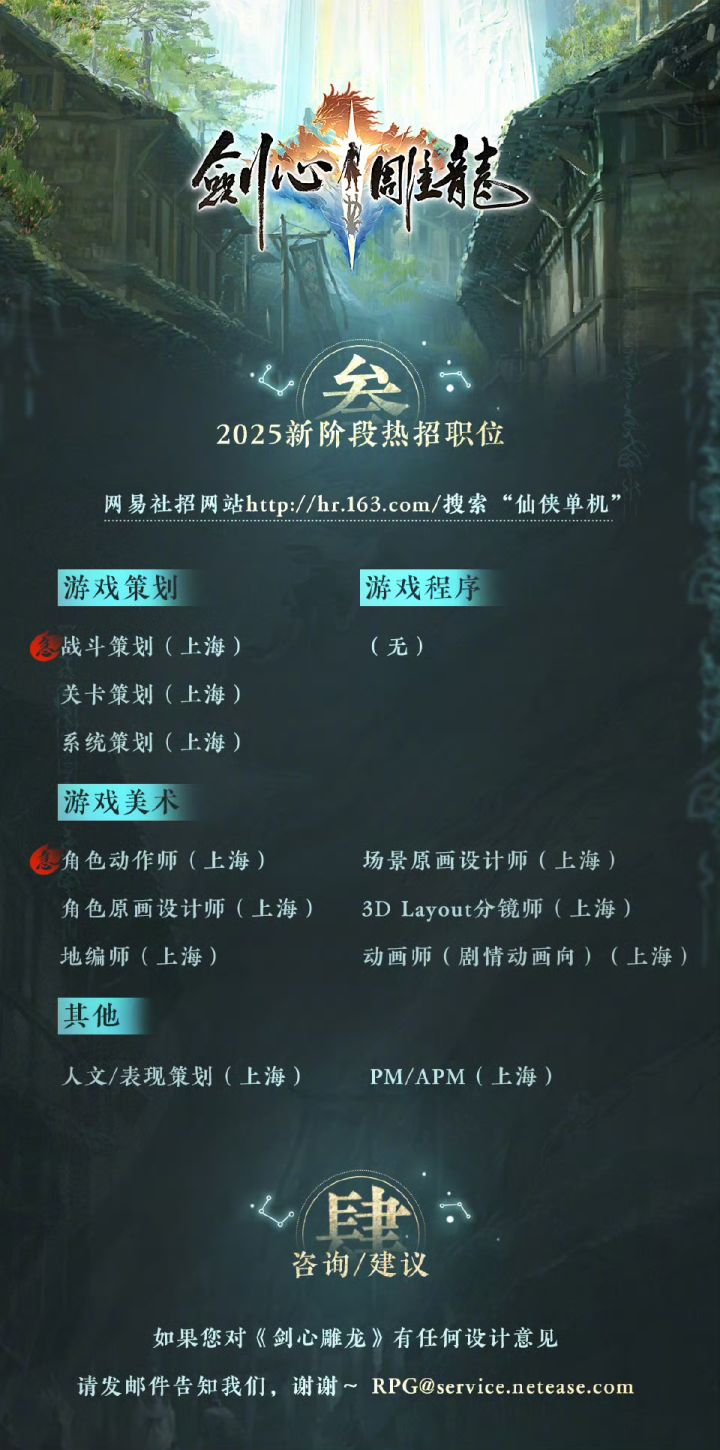 近日,网易首款仙侠单机游戏剑心雕龙开启大量招聘!看来就是要有大动作了!#主机单机 #剑心雕龙