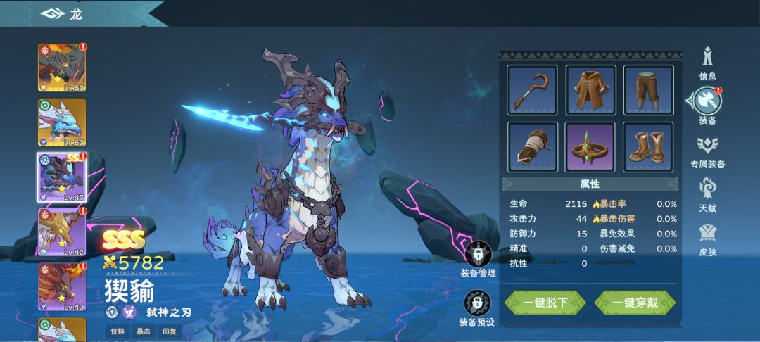 装备能够直接增加各项属性,是提升龙族伙伴战斗力的主要方式,我们一起来看看吧! 【装备栏】 每只龙共有六个装备栏:武器、衣服、裤子、护手、头盔、鞋子的穿戴。固定的装备栏只能穿戴对应部位的装备,各位驯龙师可以在龙的属性界面,点击装备,查看装备的所属部位 注:使用自动装备,可以快速为当前所选的龙穿戴最佳属性装备 【装备品质】 《遇见龙2》中的常规装备,共有普通、精英、史诗、永恒四种品质,分别对应:蓝、紫