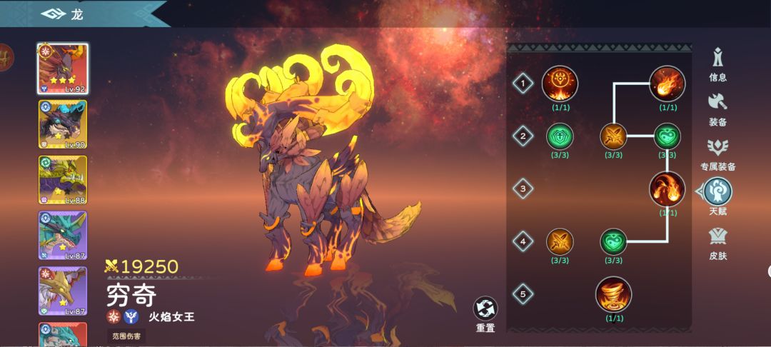 完成主线2-12后即可开启天赋系统,高阶龙才具有天赋系统。天赋系统给予龙宠更强大的技能效果。 一、天赋 龙之间的天赋是基础是相同的,但有技能相关强化天赋。 二、天赋经验 我们看到每只龙都有5层天赋,每层天赋在进化到对应星际后即可解锁,五层天赋的经验档位分别为40、90、30、180、30, 天赋消耗的材料巨龙精华可通过失落之地或者商城购买礼包获得。