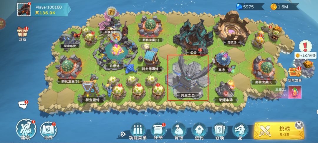 共生之灵建筑 共生之灵要遵循一定的规则才能达到效果,具体的规则如下: 1.玩家等级最高的5只龙自动成为共生对象,其中共生对象里等级最低的龙的等级,决定了共生之灵的祝福等级 2.可选取除共生对象以外的龙,放入祝福格赋予祝福,放入祝福格内的龙将自动提升等级至共生之灵的祝福等级 3.放入祝福格的龙只能提升至最高品质上限的等级 4.放入祝福格内的龙,在移除之前,无法手动升级 5.当将龙从祝福格移除后,被移