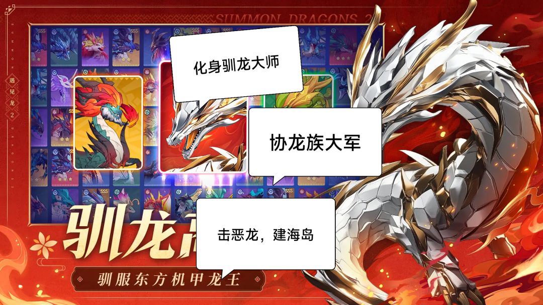 每条龙定位鲜明,分7大类:坚韧、勇猛、迅捷、灵动、仁慈、睿智、召唤。根据对局情况合理搭配阵容是致胜的关键。