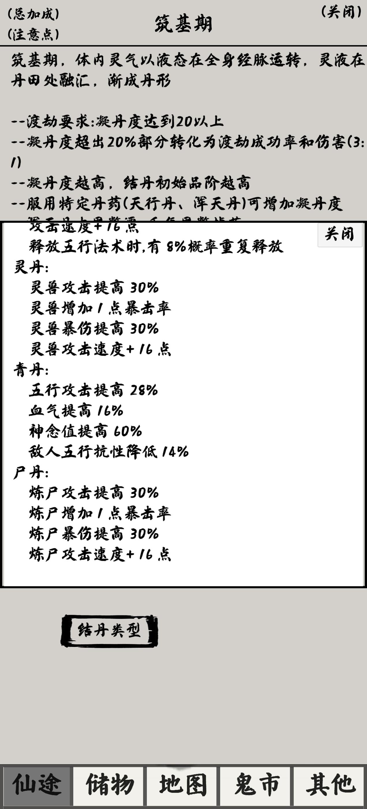 踩完了练气筑基的坑之后进入金丹。金丹开启地府之后可以刷词条,这个阶段主要就是刷装备。地府有5种地图两种刷混魔石的略过boos图boss图可以刷出远古装备还有一种是装备图能刷异魔装这个图左右两边都有装备箱,新手容易忽略。还有黄泉图可以洗装备刷到的装备在黄泉图可以洗,好坏词条都有概率洗出来。好词条装备不建议赌。黄泉能洗出全部辅助品级+1此图亦产出黄泉丹,可加寿命。寿命到头修炼速