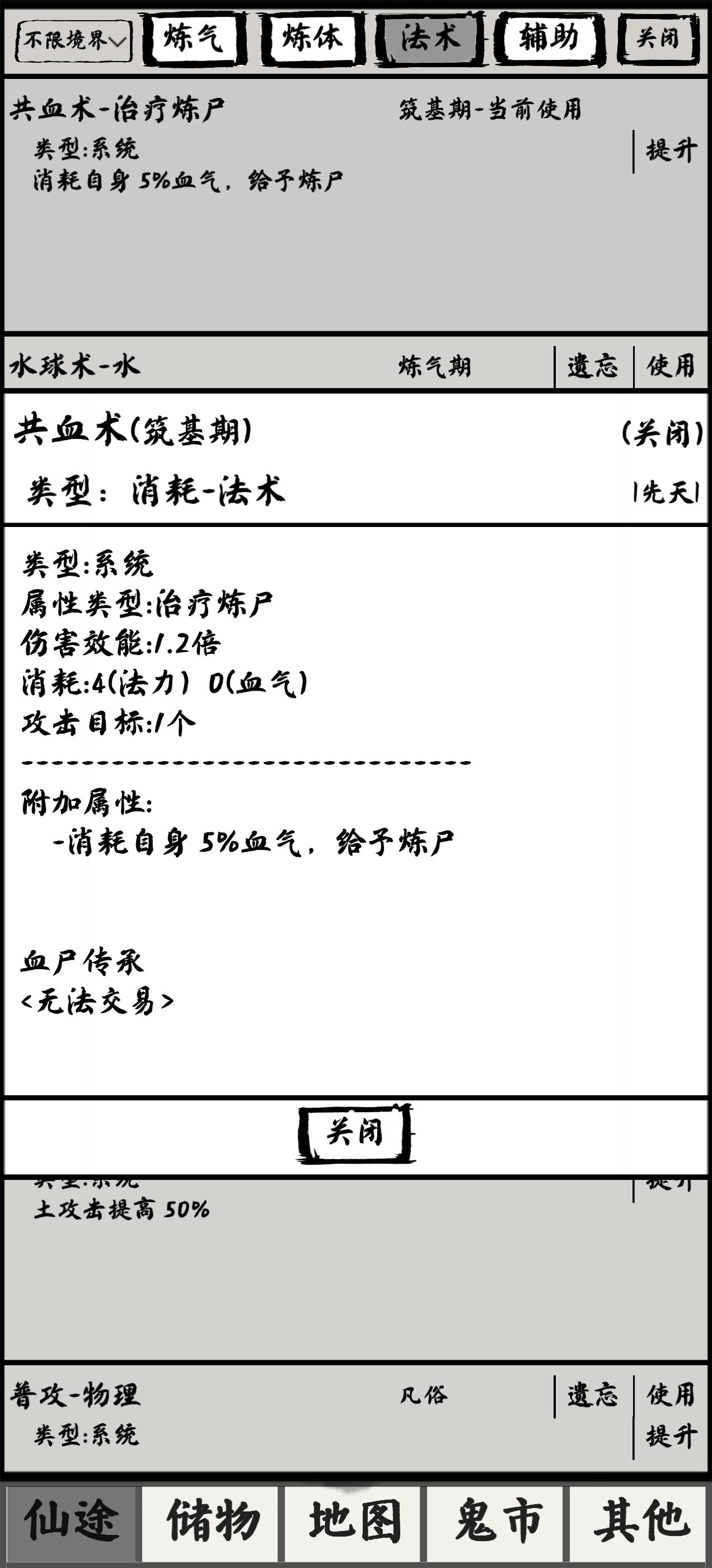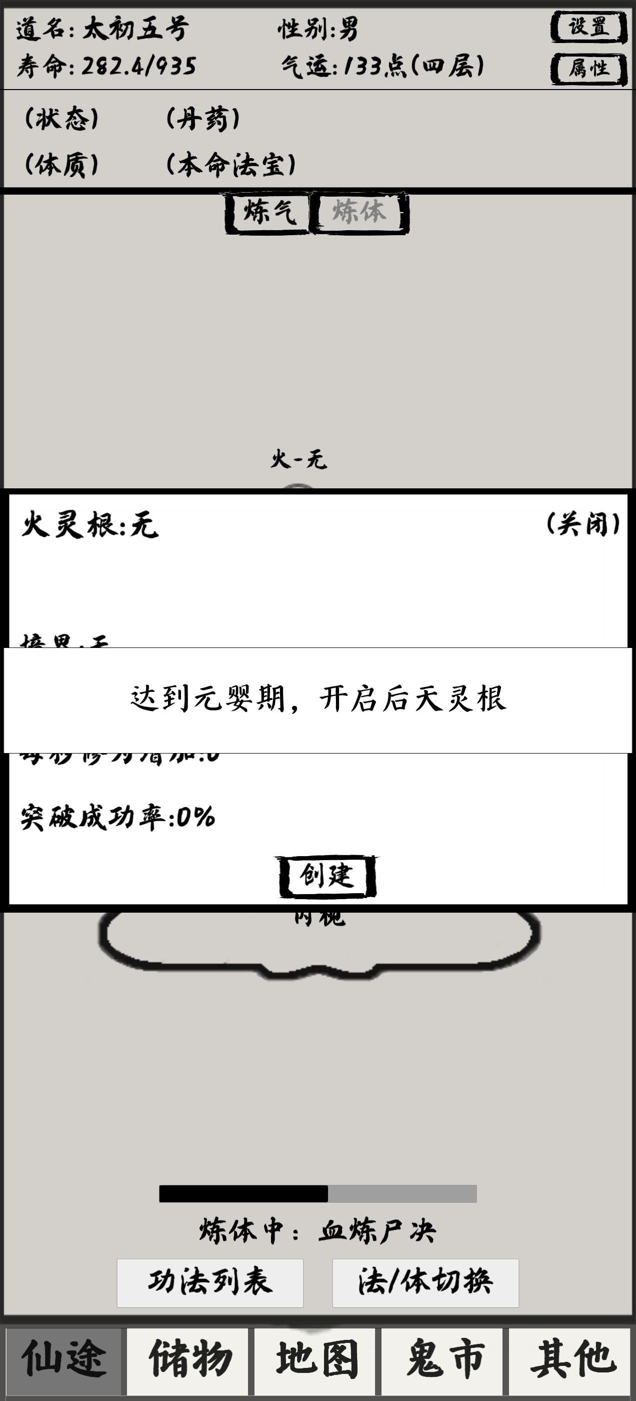 该攻略主要简述开局决定后续发展。 经过和广大群友讨论得出两条炼尸正确的发育路线,单水灵根和4灵根,这两条路将会在元婴期迎来十字路口。 为什么选择单水灵根?因为游戏中炼尸只有一个辅助,那就是供血术,这法术需要自身血量5%给予尸体,血量越高回复也就越高,体质优先推荐荒古圣体的高血量高回复。 炼尸在元婴时就必须选择自身的道路,走哪一条路开局的时候就已经决定了,炼体在五阶的时候就已经失去了最高性价比