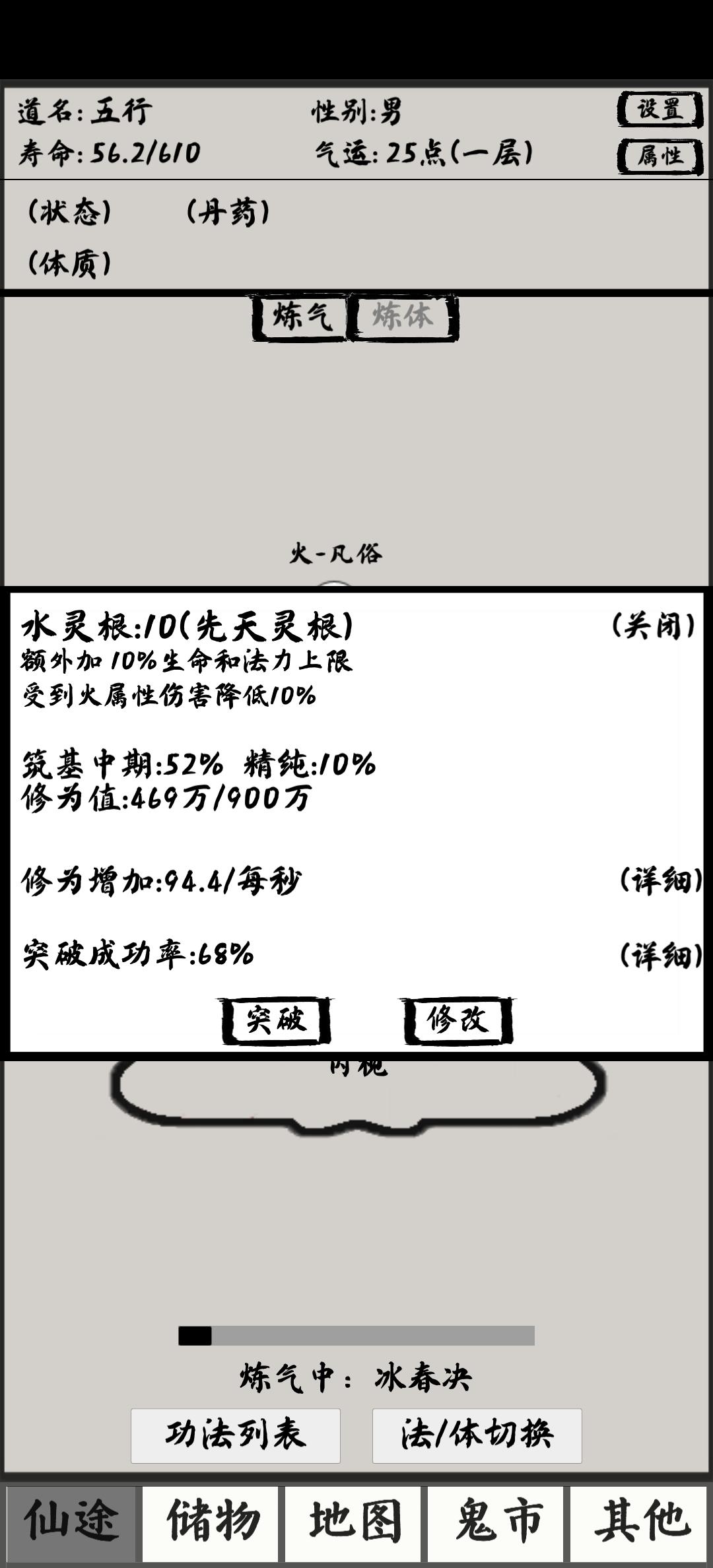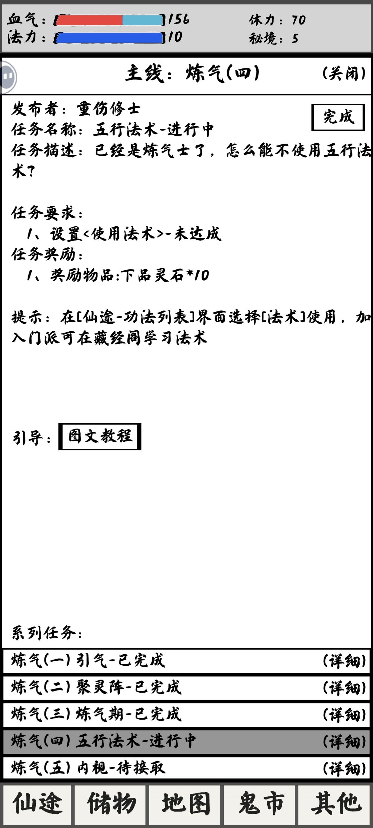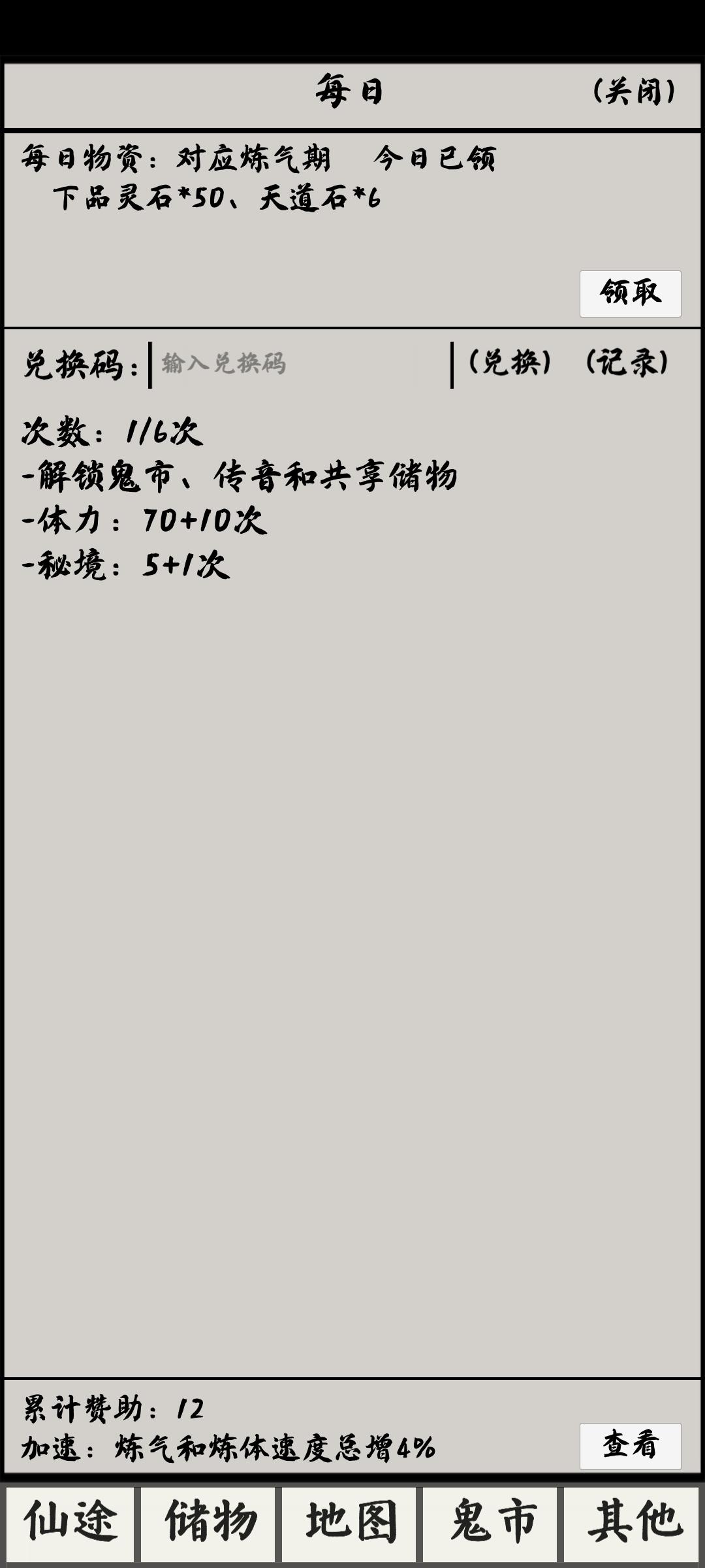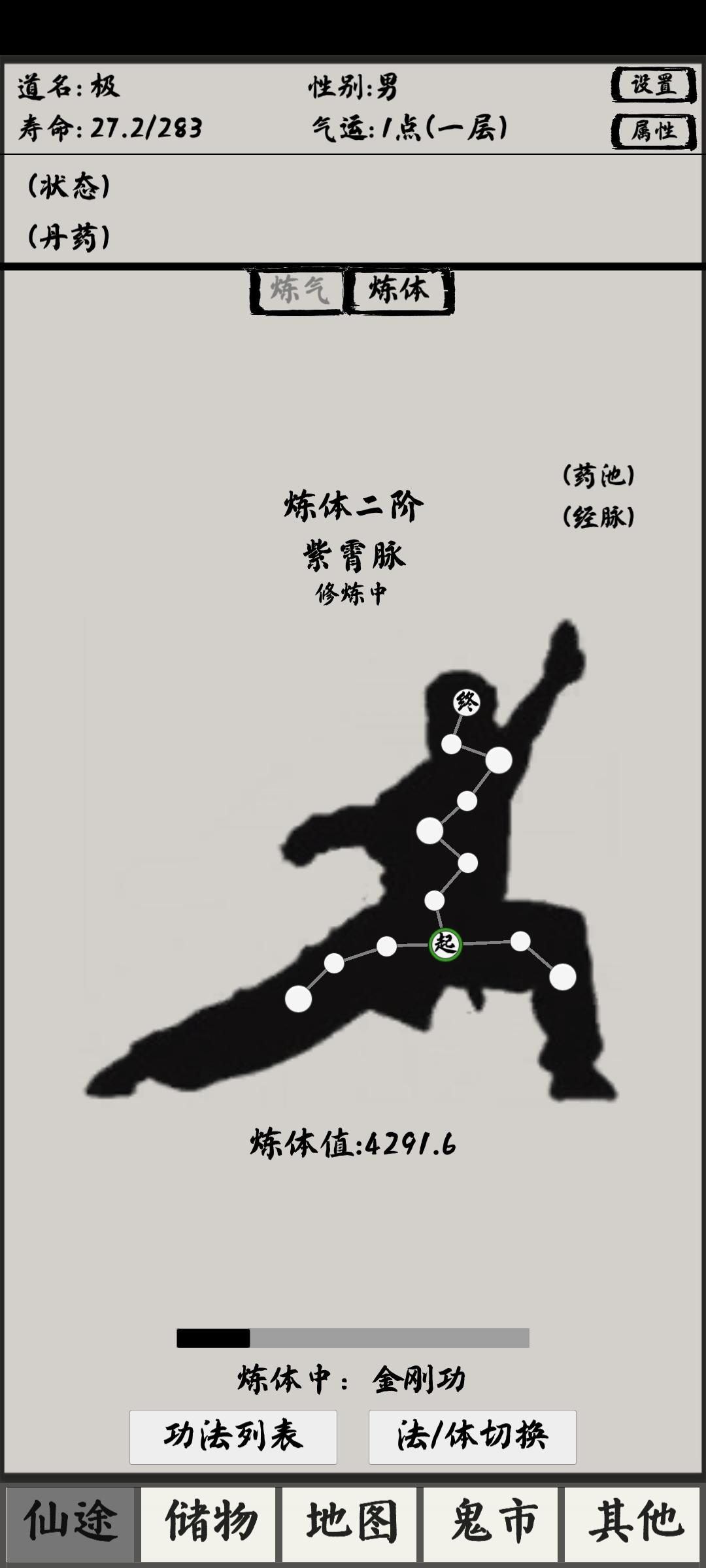 体修攻略 3.0版有道友反应刚开始不知道怎么玩那么我们进游戏登录之后创建角色灵根选择:现在主流的是4灵根(推荐是不要金灵根)(但还是主修一个灵根)和单灵根(推荐水灵根)进入游戏先点击仙途,再点击功法列表选择对应的属性功法修炼,在右上角的设置里选择复制角色ID,再在每日里兑换,顺便领取每日物资,然后把储物里的赞助资格用了,这个是开鬼市的步骤。然后去到乱石村,村子里村长和张嫂有任务(这两个任