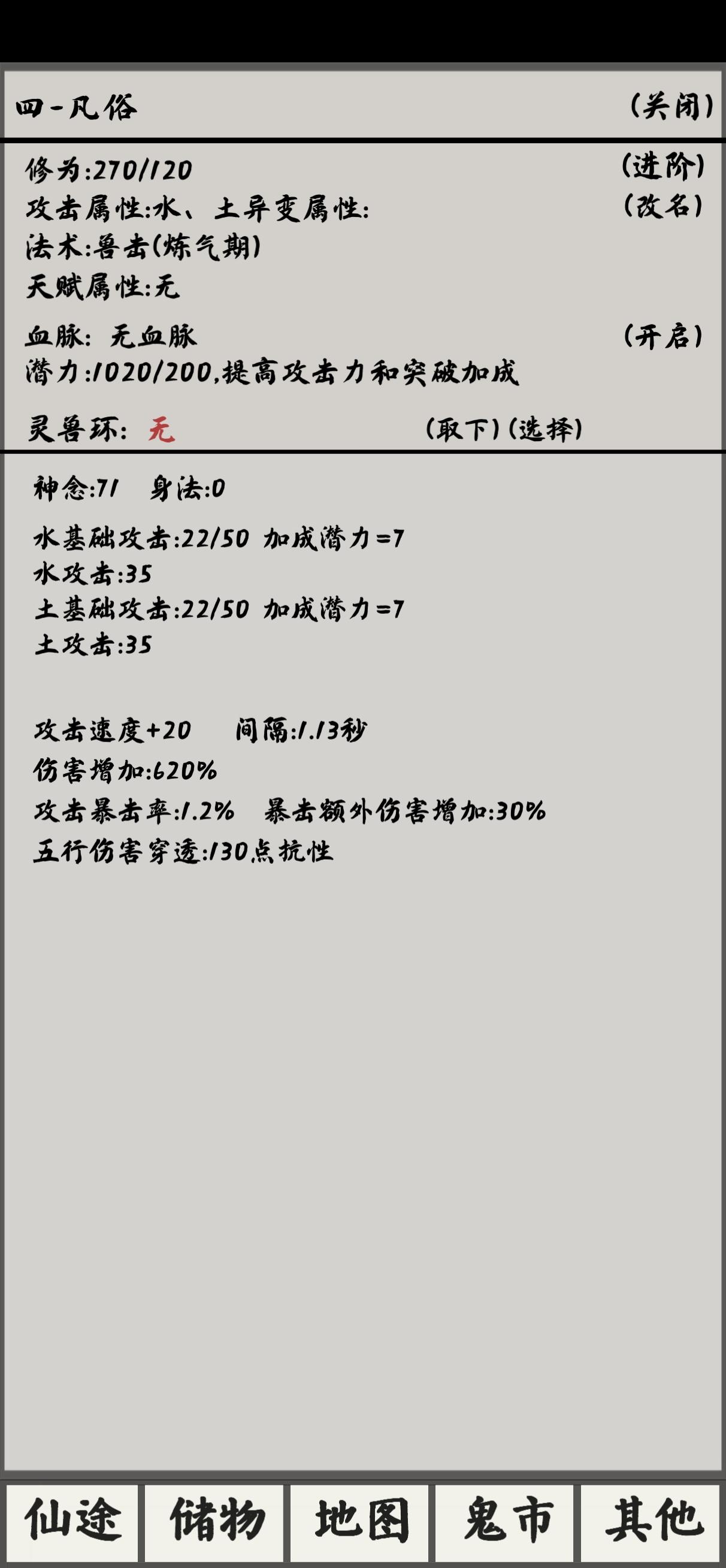 灵兽基础攻击力需要互相吞噬提高潜力想补满基础攻击力潜力得益出,我做了对比凡俗升阶练气潜力需要吃满一千,练气期攻击才会吃满练气升筑基,需要溢出300练气期基础攻击吃满,升阶筑基吃够500,到筑基气会少10点,吃到680,会少3点,所以建议300。筑基升结丹,需要溢出400(300应该够了没有去试)还没到元婴