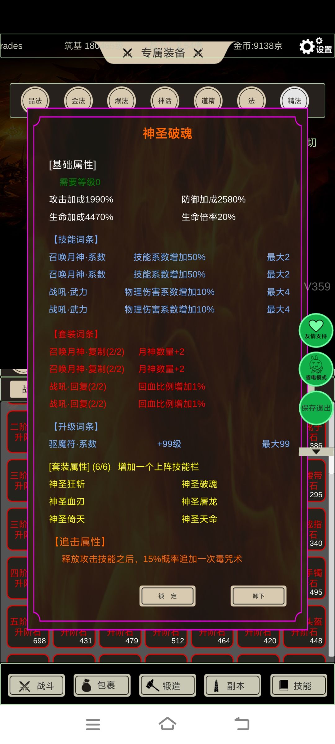 入坑最佳每周日或者节假日活动前1-2天,用1到2天搞好幻草套,3倍开刷兑换物 1简单出的前期装备都是过度。强化和精炼优先血量和防御,也就是腰带,鞋子,衣服和头盔还有4格里的护盾。防御够轻松推图很好打。 2出魔法盾技能前,用闪电加回血技能,点一点四格防御。 3出法系精通前,装备词条为3闪电数量,3魔法盾时长,其他4个随意推荐闪电鹰眼。 4出了法系精通后,装备词条为4精通,3闪电数量,3魔法时长。若4