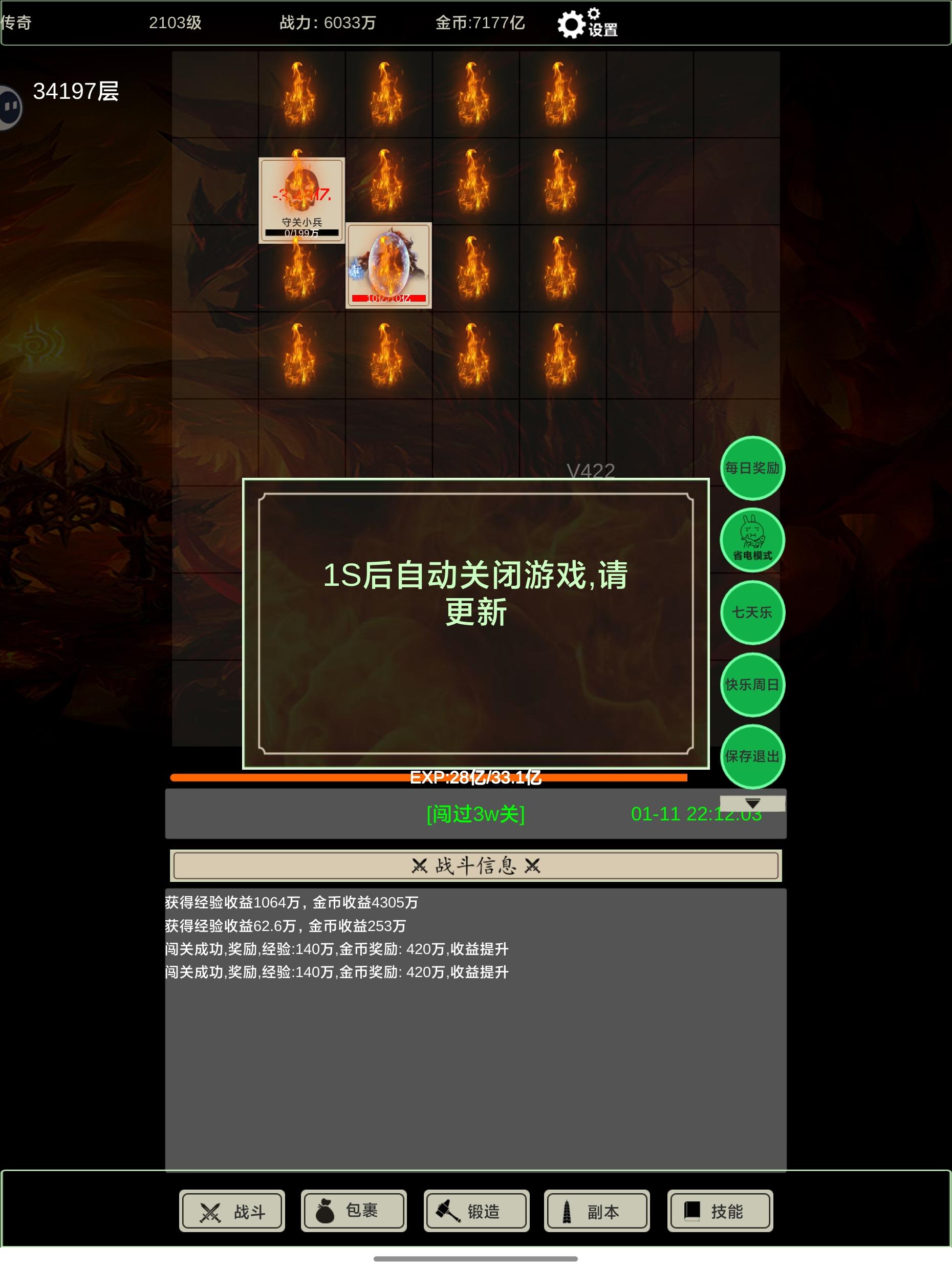 首先,感谢策划的一路更新,游戏做的很好,很适合我这种弱网的上班族玩家,带点传奇情怀,希望越来越好,做大做强!已经玩了一个月左右,目前五转,战力沟。想提下几点游戏建议,望采纳:1.那个每日广告奖励,希望加大点数额。2.一进群大家嚷嚷着玩道士,然后稀里糊涂玩起来了。后来发现,道士中后期太菜了,比如地狱难度,你说打的慢一点吧,我也不怪你,挂机游戏,就是一个消磨时间。但是为什么根本就是不能打,而且只