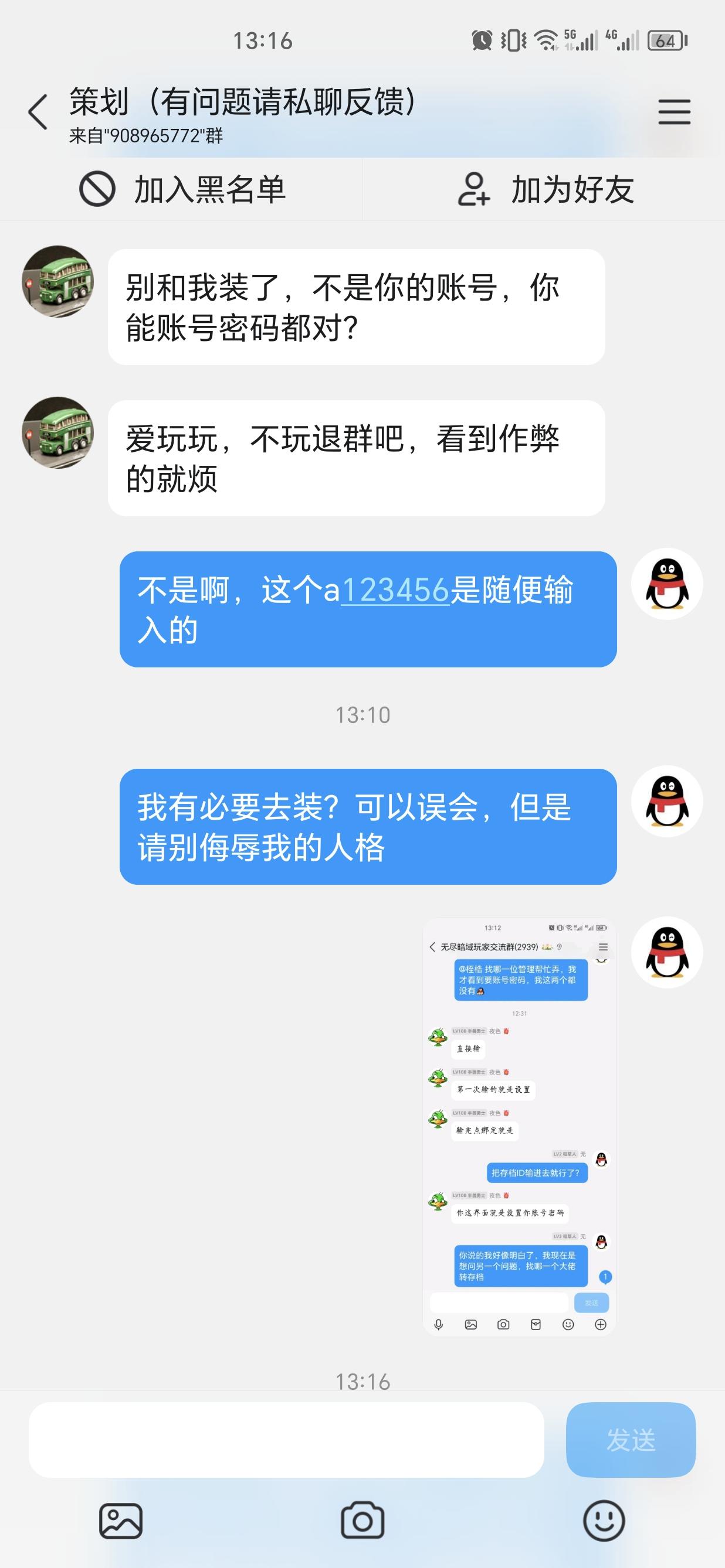 今天加入群之后发现有APP版本的,然后下载之后按步骤去转存档,结果被告知我作弊了,谁想到已经有人用过这个:a123456账号了,密码也是这个,我汗,到底是哪一个大神,这个不是最无奈的,找作者说明原因,他直接污蔑我就是那个作弊的大神,不给我解释,直接把我踢出群了。没试过那么冤的,你是作者你清高,你了不起行了吧!