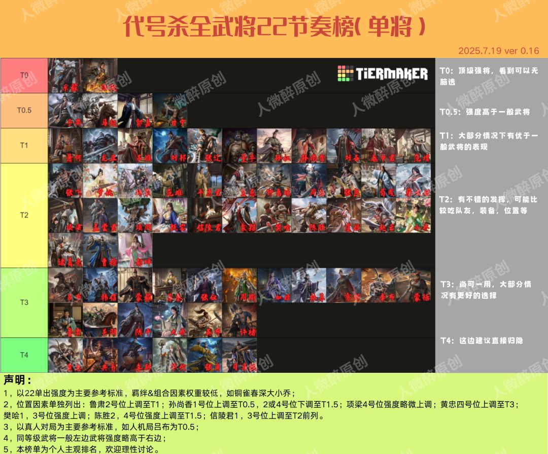 主要修改:增加了新武将乐毅,苏秦,张仪,范雎,平原君,信陵君。替换梦姚原画上色版。孙权,刘备上调;萧何下调。让我们恭迎新晋T0乐毅。 #代号杀 #代号杀武将强度 #代号杀节奏榜 #代号杀22节奏榜武将