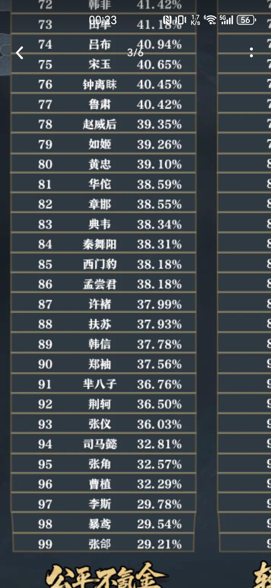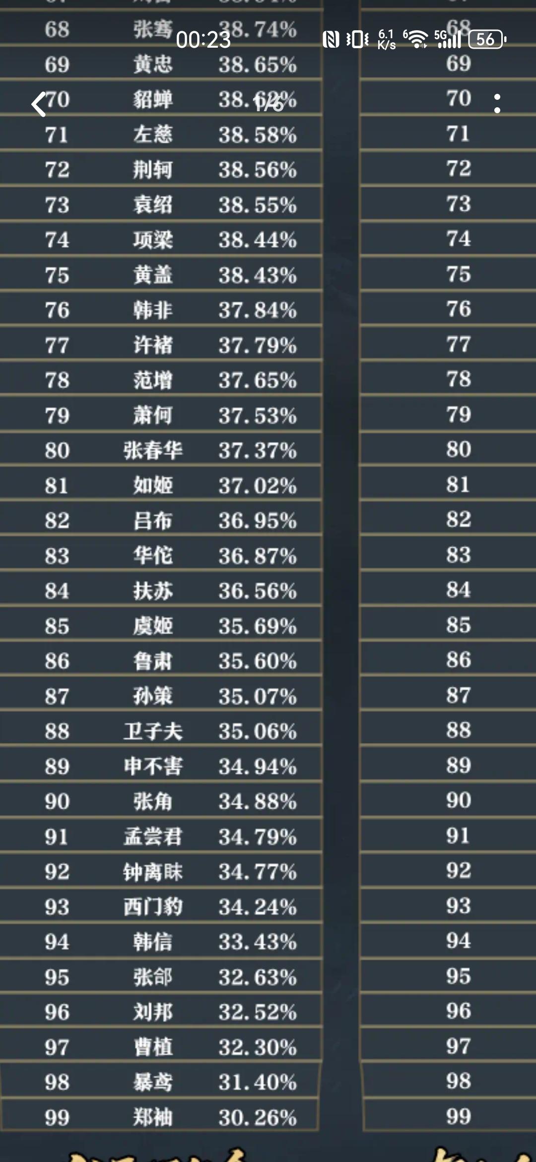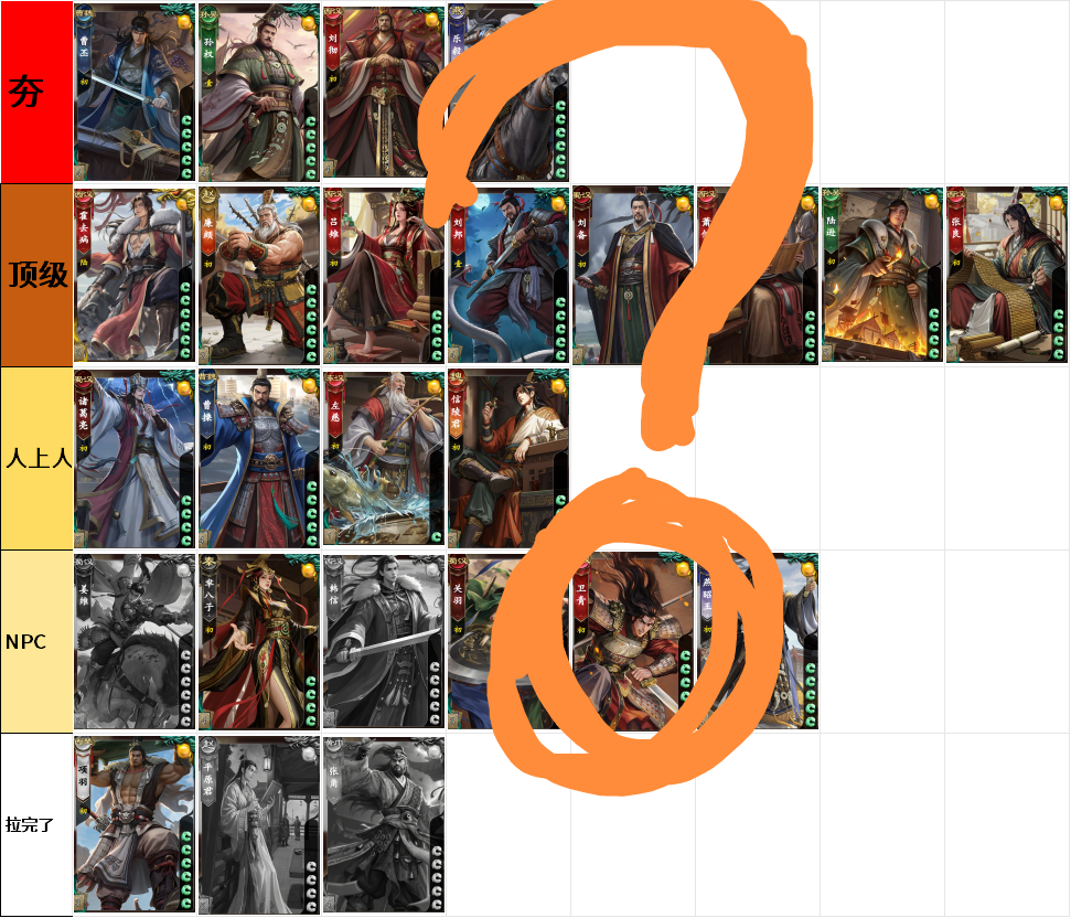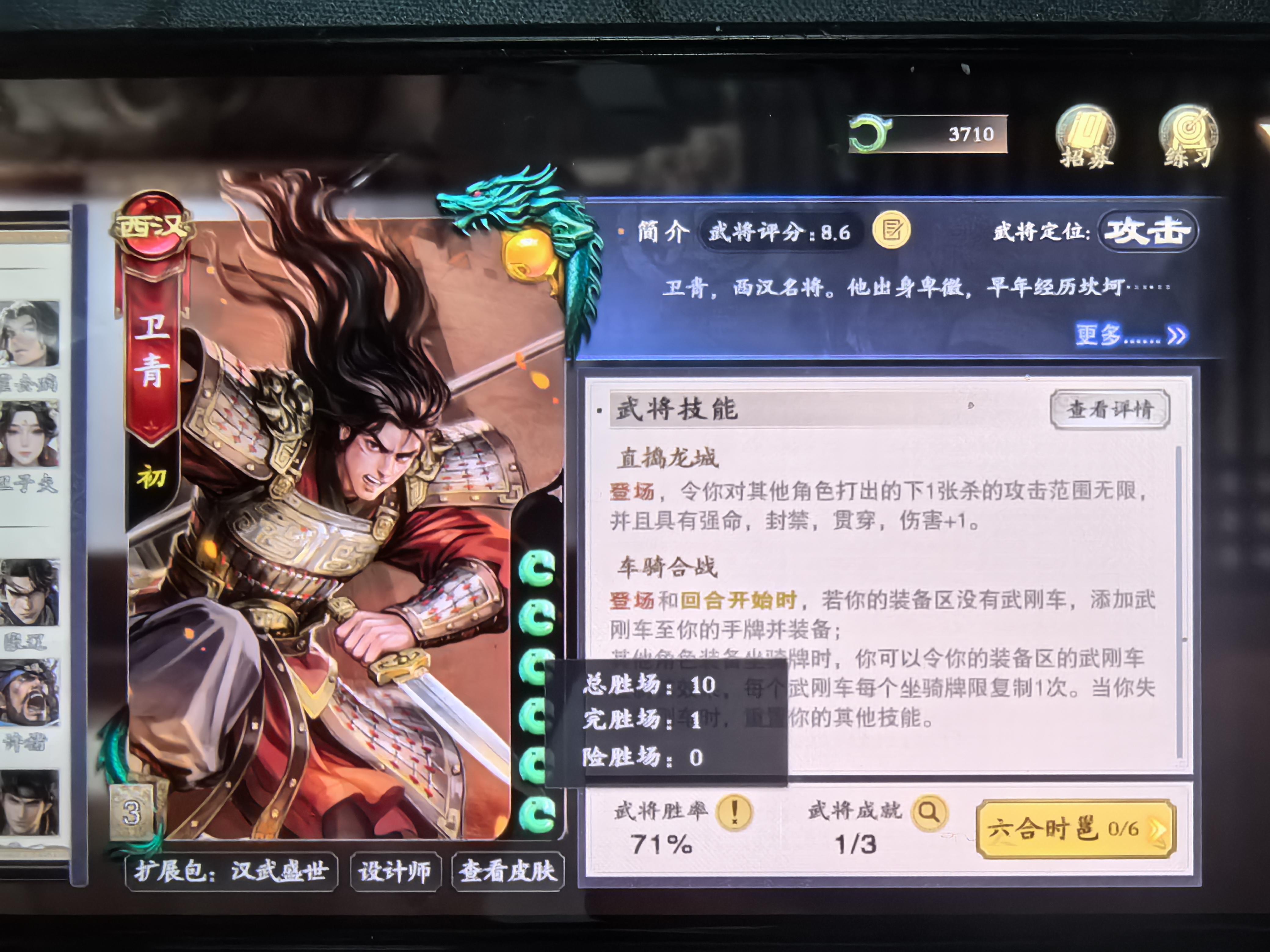如图,我真的想问这排名怎么来的。为了卫青还有一个朋友把我删了因为我说卫青比霍去病强,无语了卫青不是无敌,但是这个排名就真心莫名其妙了。要我来排吕雉和霍去病分别下降1到2级卫青去到顶级吧。卫青的问题无非就是摸牌白什么断杀/没法自己卸车等等归根结底就是摸牌白但好多6/3菜刀都是这样,这不挺正常么和马超单挑过的人就知道马超强在哪。是像吗喽一下可以跳来跳去吗?不是是禁招吗