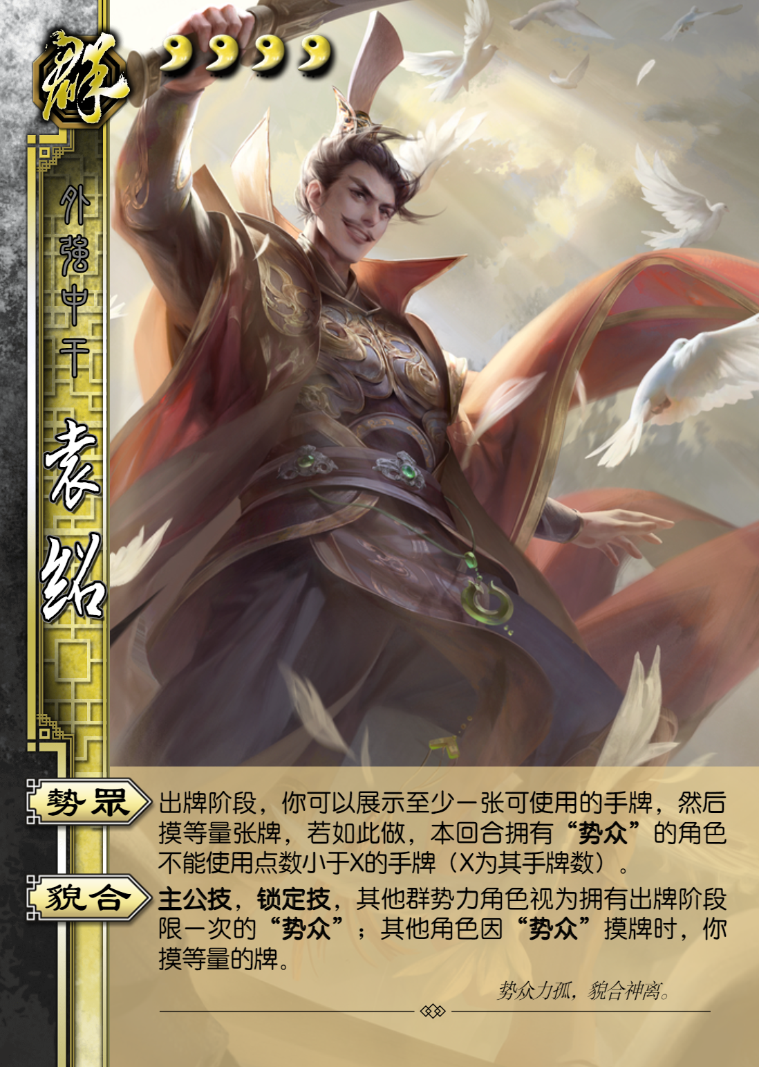 纯脑测且仅限军八:庞统拖时间我没感受出来,除非系统安排局给主忠有配合的将不然这个很快就死了,看点就是场上铁索传导伤害就呼吸摸牌的十常侍(别说我串就是差不多),脑测游戏体验不会怎么好,判定一种花色才能复活就是死之后坐牢挂着。袁术其实还行,没弃牌阶段玉玺还能抢来抢去,但策划是不是忘了有个将叫做君王后?
