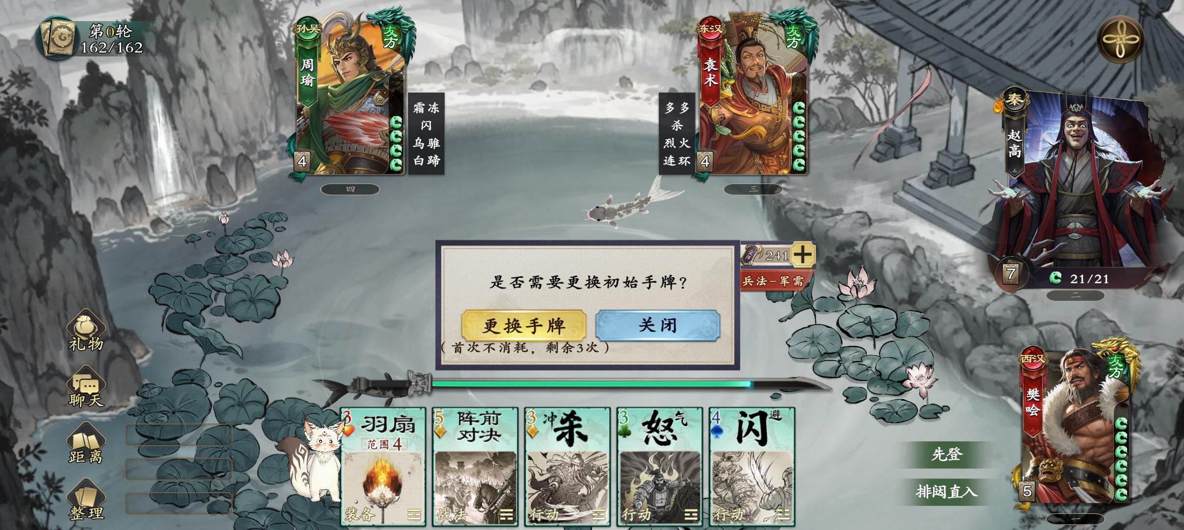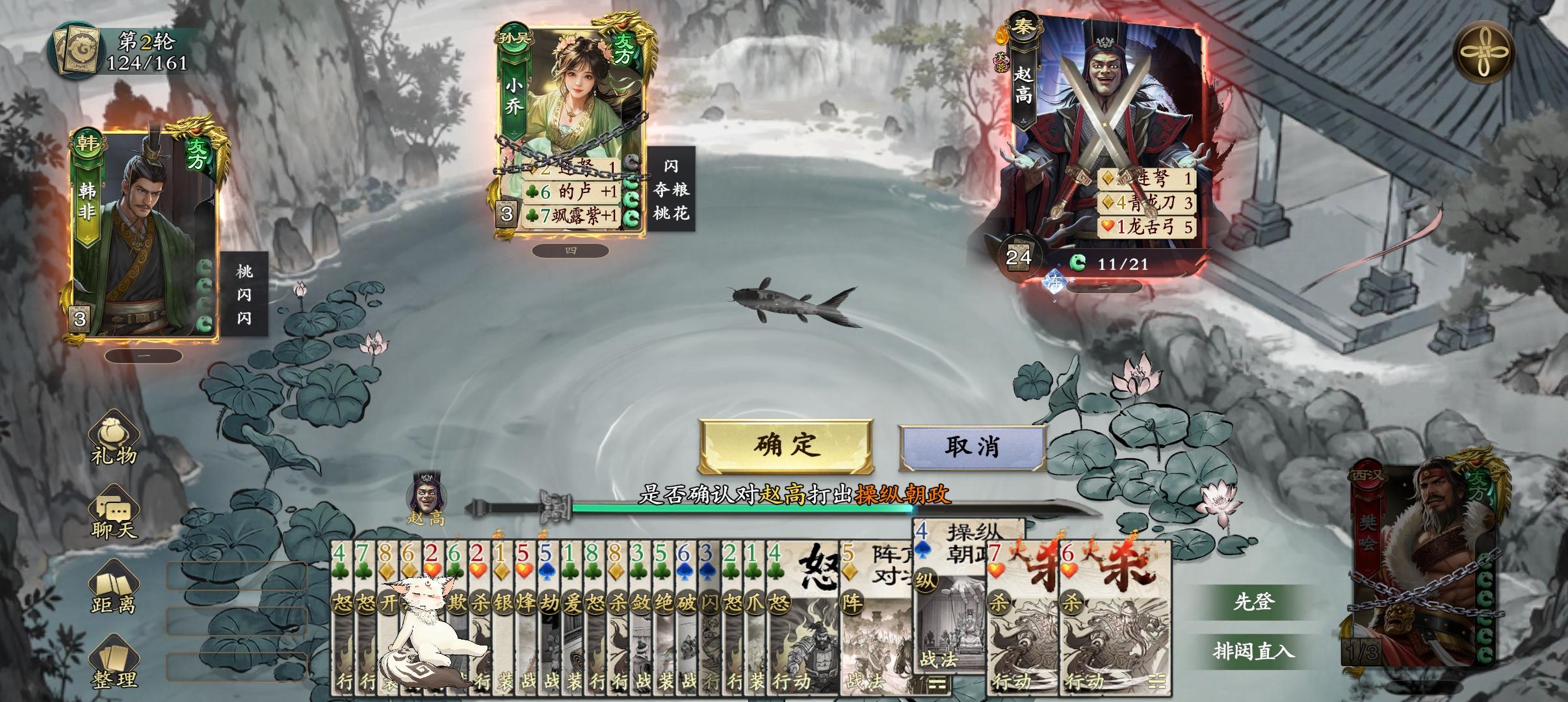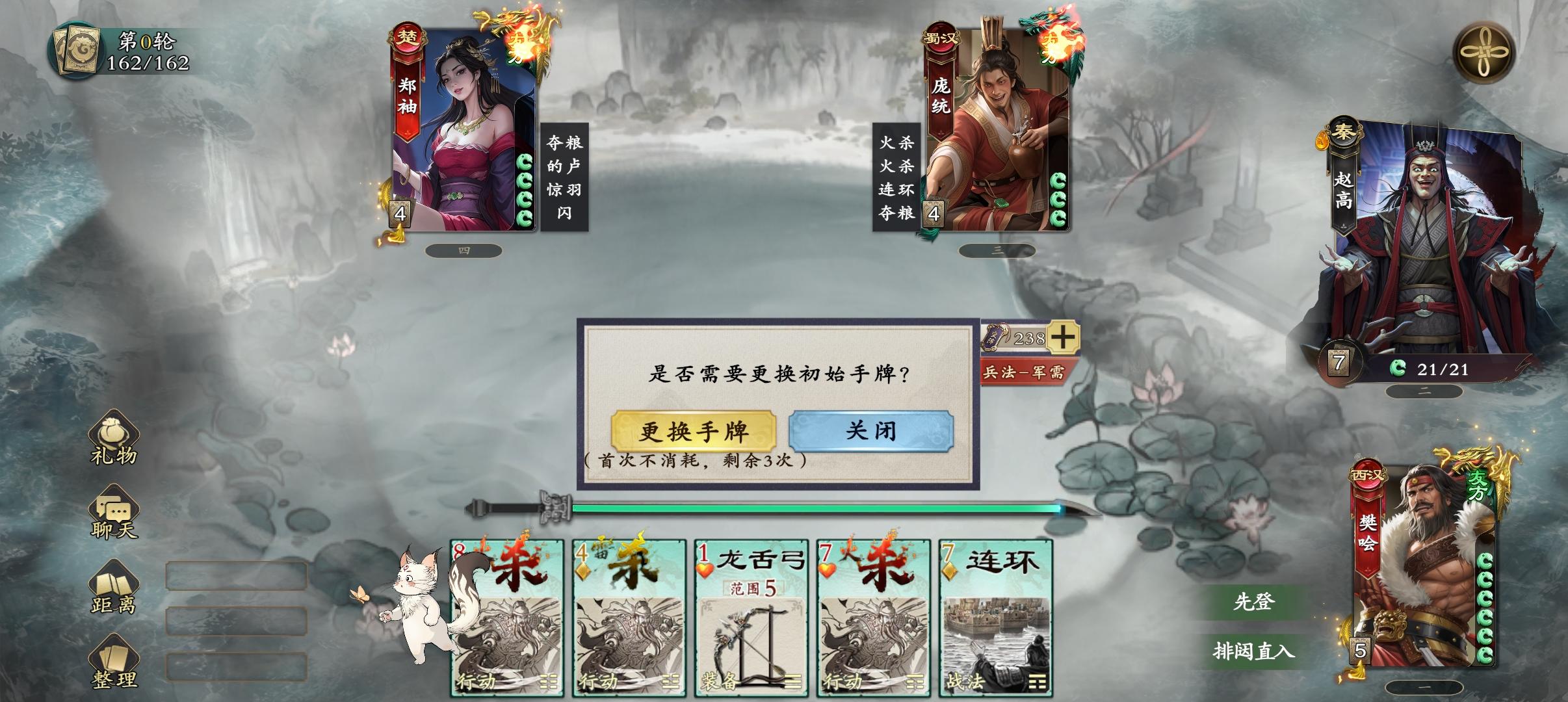 法正摸牌改为摸同点数的两张,大家可以看一下,牌堆的关键点数是2,5。点数3,6要稍微次一档。点数1识破和装备牌很多。点数2有装备,连弩和多多益善。点数3久旱,烈火,怒。点数5顺手,烽火,对决。点数6,拆和调兵。所以手气卡和留牌规则是,优先留一张点数2,作为回合内大过牌的保底。其次留一张点数5,顺牌和伤害都有。再次留一张点数1,作为启动和垫数字使用,实在没有可以用一张大点数替代。3