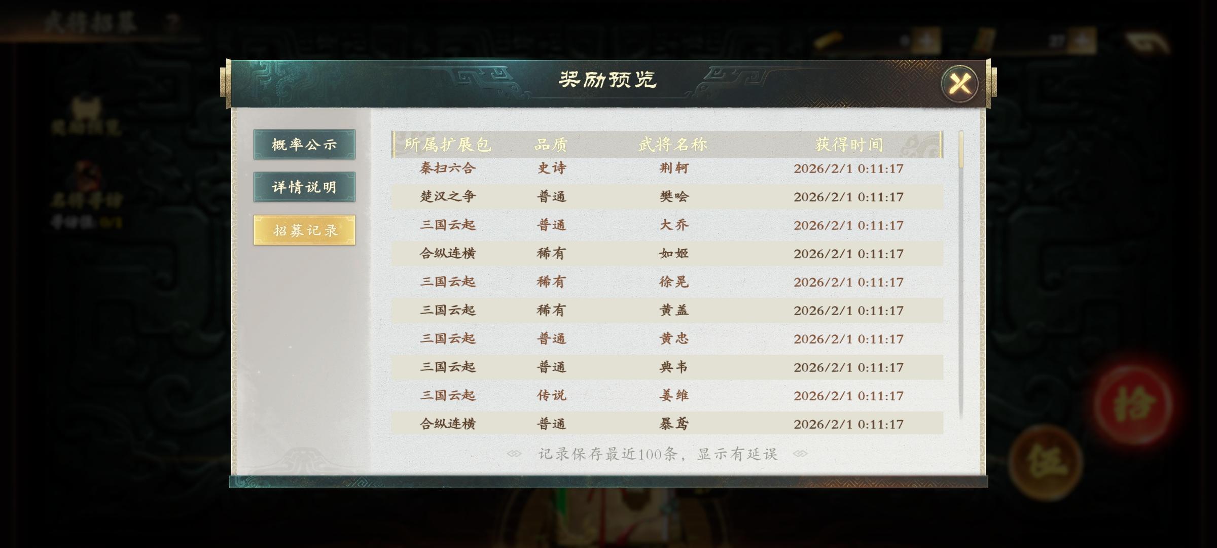 本周新武将,和武将调整