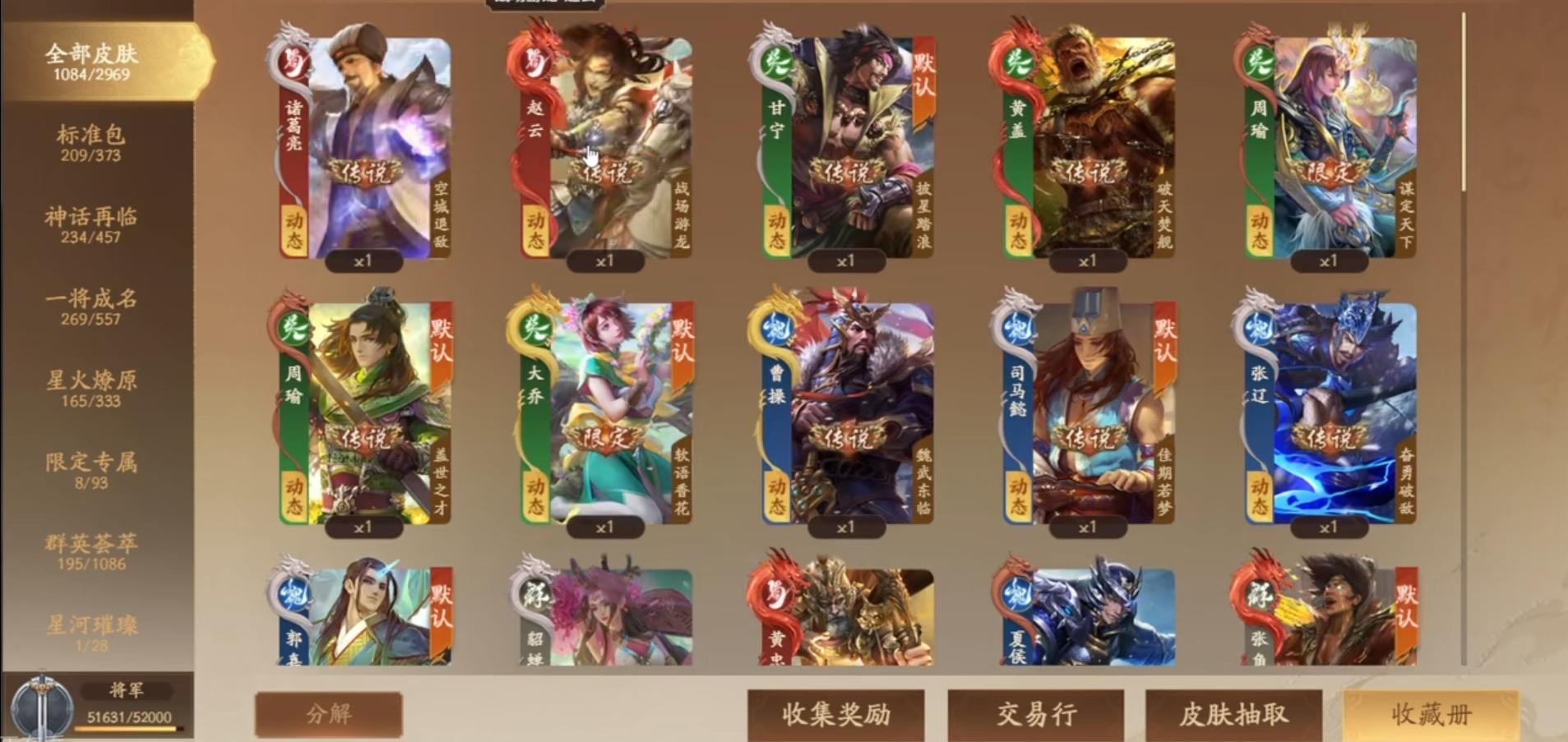 目前《名将杀》中一共有25名传说级武将,一般来说我们抽满传说,也基本上能抽满其他的全部武将。今天我们就来聊一下多少抽才能获取全部武将,小伙伴们可以参考一下。一、卡池机制卡池招募有2.2%概率获得传说武将,卡池有40抽保底传说。除了通过卡池招募以外,也可通过玉猪龙合成的方式,来直接合成传说武将。 二、抽满需要多少钱?根据目前公测的情况,大概300抽左右就可以抽满全武将。听朋友说大概2000块