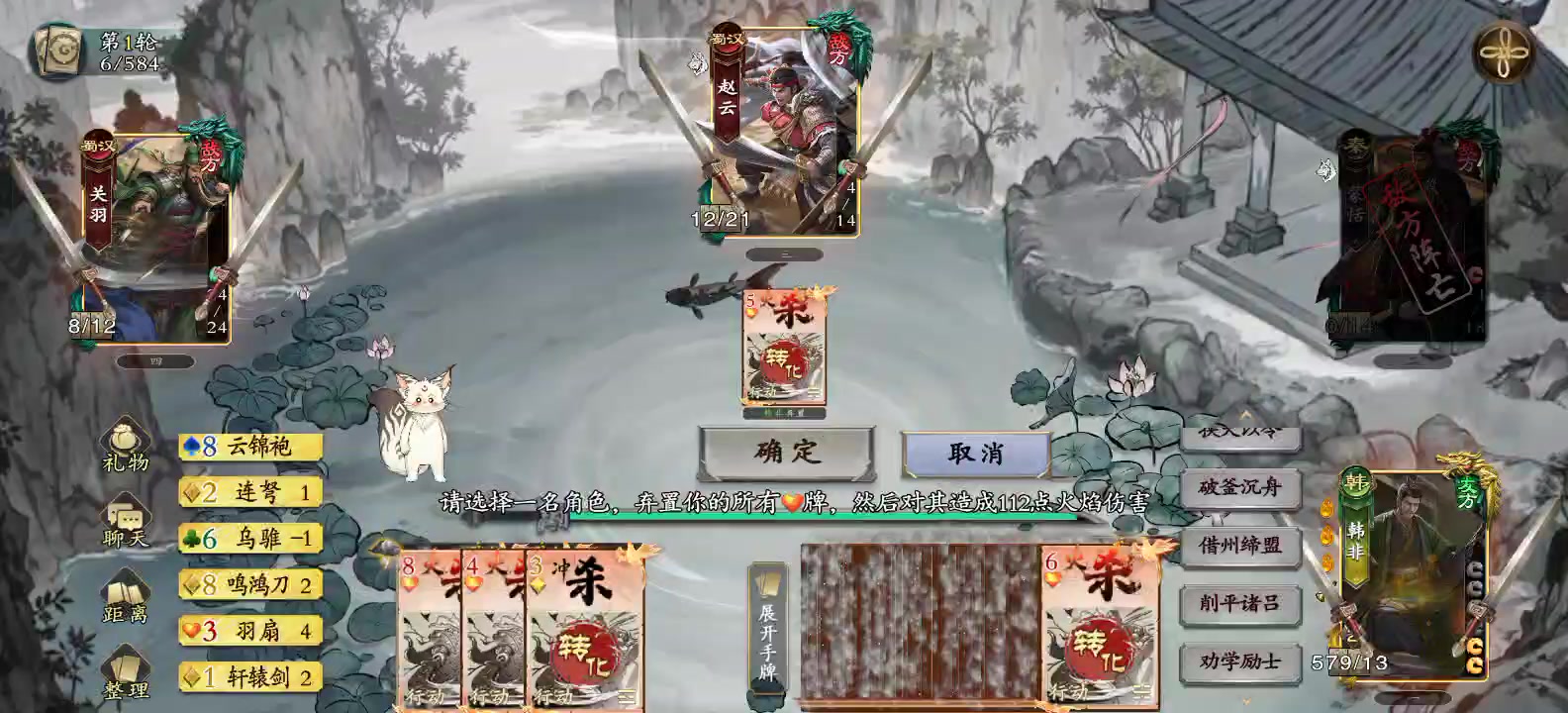 1.张辽:我调整了一下,张辽的1技能。1逍遥止啼:回合开始时,你可以获得其他角色的一张手牌,然后令其本回合无法打出识破。(修改前)回合开始时,你获得其他角色一张手牌,令其本回合无法打出识破,若这张手牌是这名角色最后的手牌,封禁该角色。(修改后)我还在这里面,修改了语句。————2.许褚:我为许褚增加了一个技能。3虎卫:你的阵前对决在回合外的伤害+1。————3.甘宁:我调整了一下,