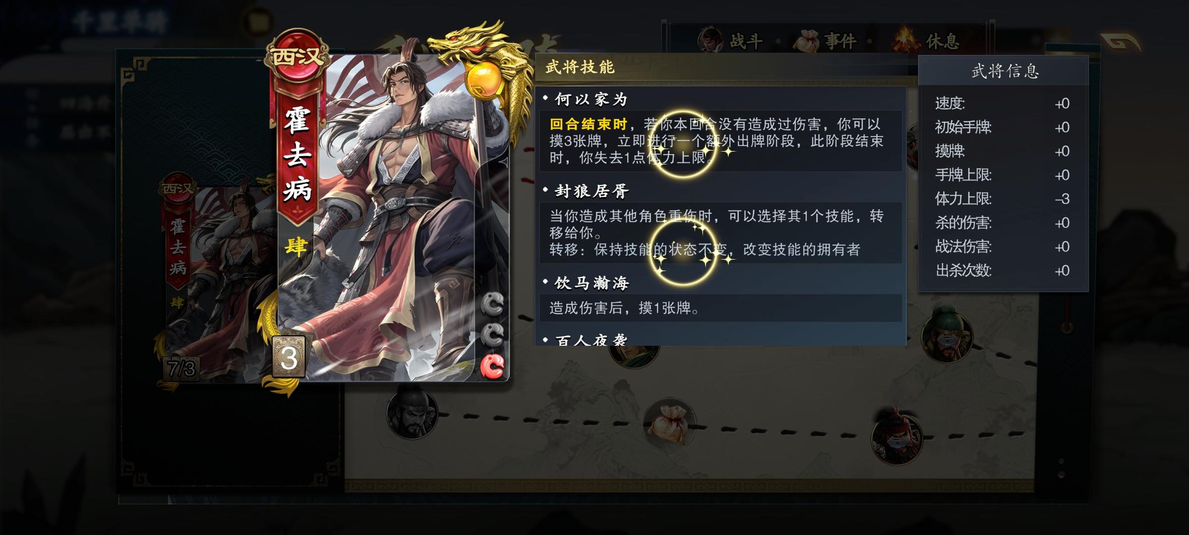 用的霍去病,已经分配好了属性点,进千里单骑模式战斗后,属性有误
