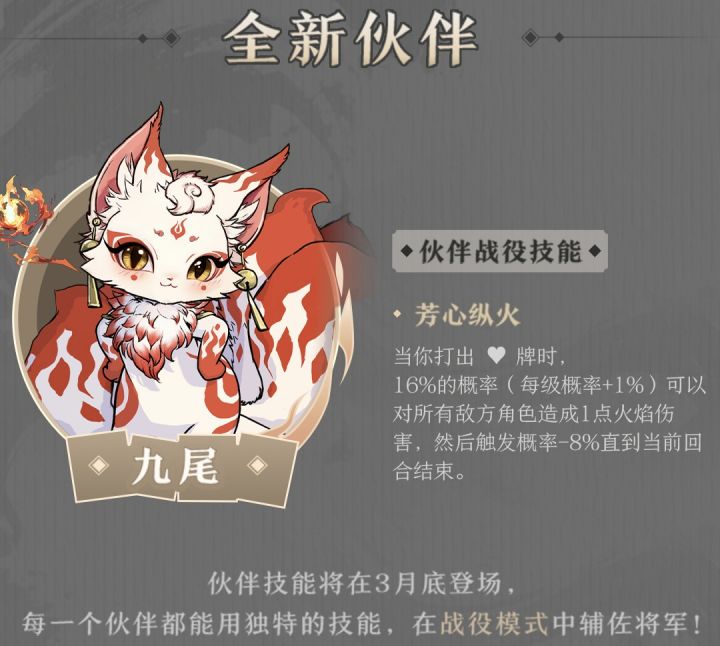 上午发了一些伙伴的规则,收到了大家很多反馈,结合大家的反馈进行一些说明。问题1:大家按将灵的印象来对比伙伴,觉得这一版伙伴的技能太弱了,将灵靠技能是随便带个武将就能打穿PVE的。针对这个问题,我们的想法是这样的:1.大家觉得这版伙伴技能太弱了,可以加强一些。(加强后的版本后续继续爆料讨论)2.隔壁将灵是不加属性的,而传说伙伴是加了20点实际的属性叠加在武将的战役属性上的(六阶武将一共24点