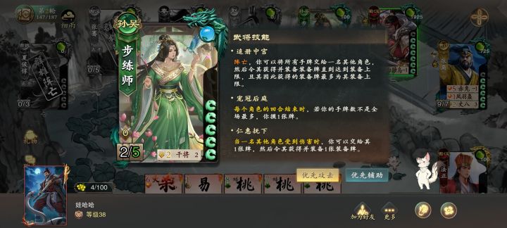 新武将黄月英 4手牌 4体力 蜀汉 稀有巧手匠心出牌阶段限1次,你可以选择1张手牌或场上任意1张装备牌,获得1张此牌的复制。奇智佐谋你主动打出的战法牌生效2次,每种战法牌每回合限1次。王异 4手牌 4体力 曹魏 稀有忠贞刚烈回合结束时,你可以令一名其他角色的手牌数或者体力值变为与你相同,若其手牌数或者体力值因此改变>=2,你受到1点伤害。 舍子全义受伤,令一名角色弃置所有手牌,