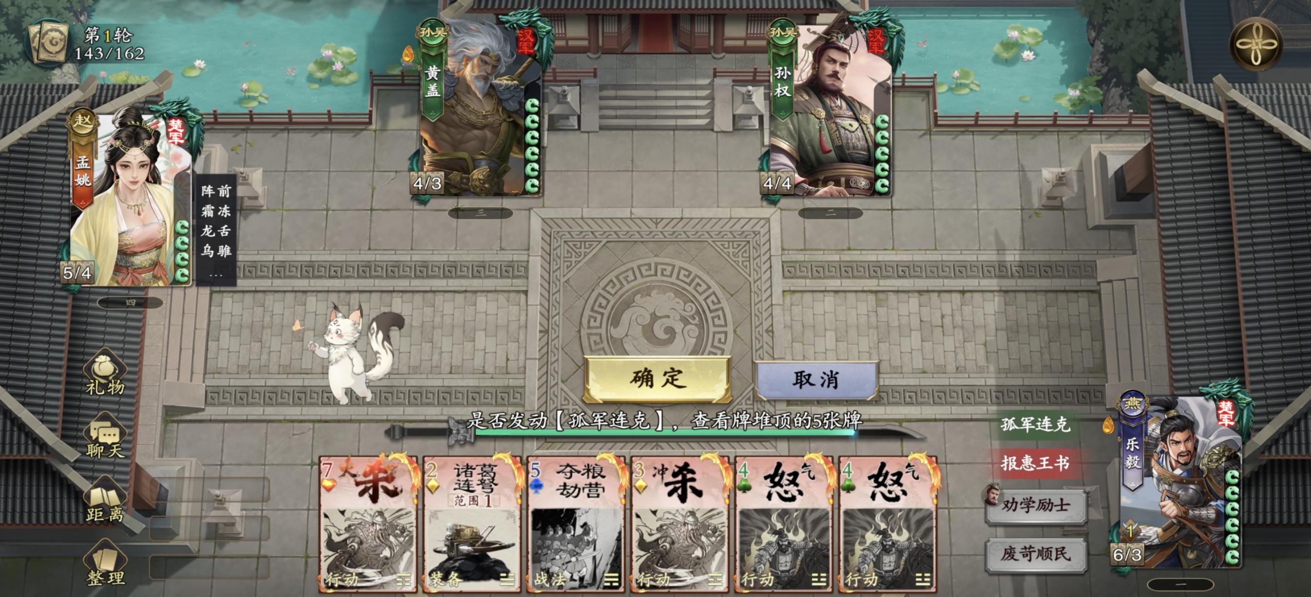 顾雍,吴,稀有,5手牌,4体力上限。一、严厉正大受伤,弃置伤害来源的3张任意区域的牌。二、心膂股弘每轮限1次,令1名角色装备上限+1。