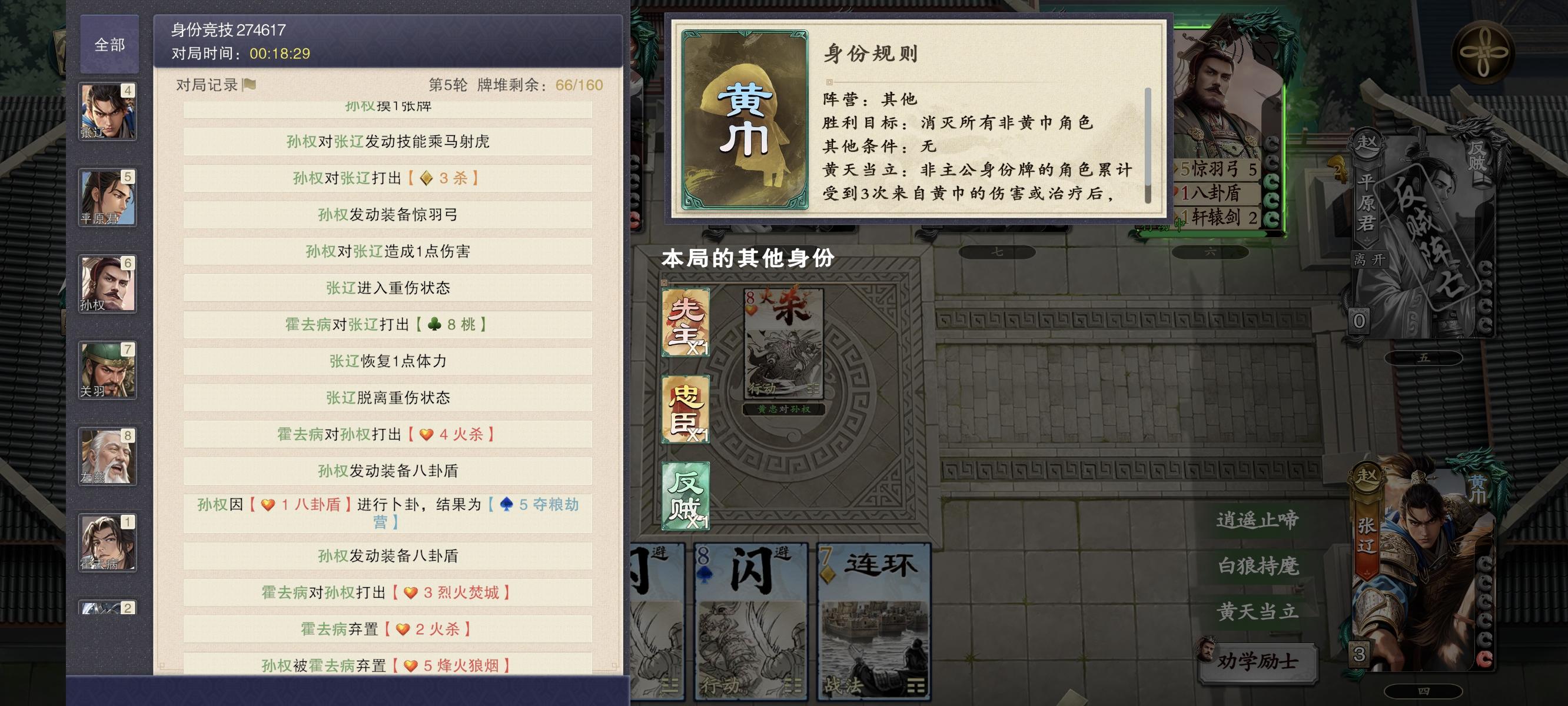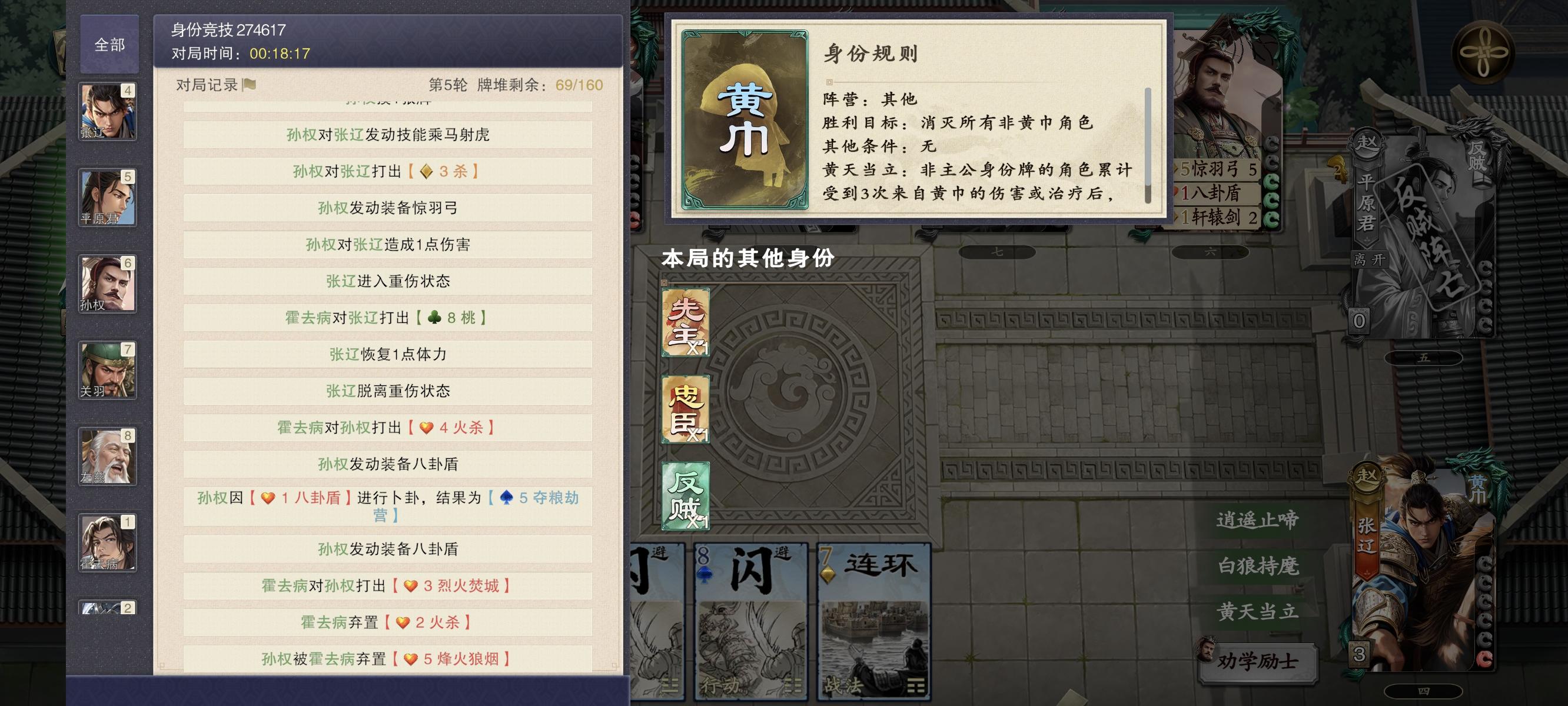八人身份局是有三个阵营的昂主公啊,我不是好人你救我干啥哈哈哈哈哈哈哈哈哈,我不打你是因为我我现在只有一个人打你暴露的太快了啊!!!那个孙权一直打我我才打他的!!而且他血条厚我有个光明正大的理由感染他哈哈哈哈哈哈哈哈哈站在孙权的角度真的心都快死了“我一直没有攻击的主公救我觉得是黄巾的人,还有一个队友不仅救她还帮她打我?”这把最有意思的就是我一个拿了一堆烂牌的黄巾,一个人没有感