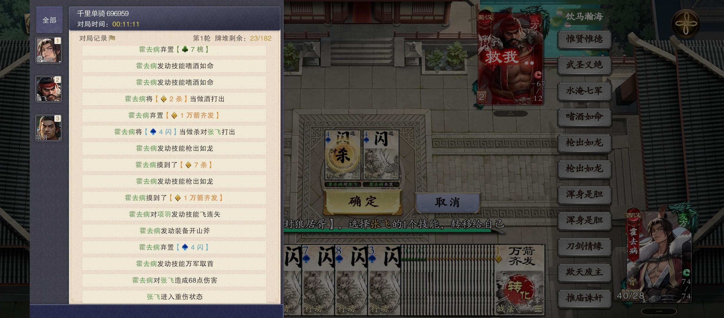 霍去病千里走单骑,渡过了前期就是无敌的,想过牌一直装备就一直能过,抢了华佗技能,血上限也可以无限,吃了半天酒,最后一刀68#名将杀组合 #名将杀pv脑洞