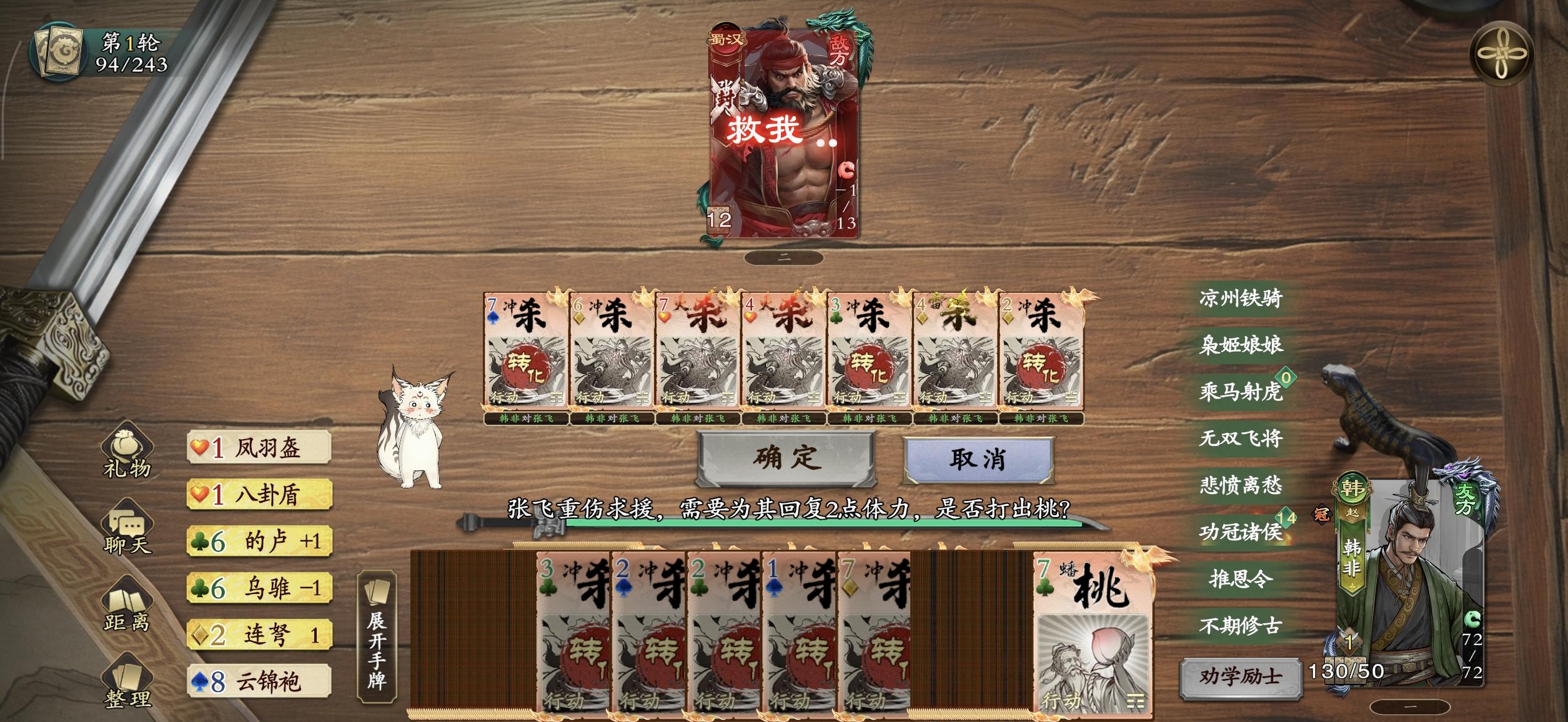 韩非刷技能推荐:1.【核心必备】燕昭王的黄金台:强化连弩和乌骓,还有一些防具保护,强化桃加血量上限2.【前期发育】霍去病的封狼居胥:偷垃圾技能用来转化2.【前期发育】荀彧的荀令留香:加手牌上限3.【补牌】孙尚香的枭姬娘娘:过牌4.【补牌】孙权的劝学励士:过牌刷牌4.【中后期输出】项梁的先发制人:出杀,配强化连弩+封禁,加手牌上限5.【中后期输出】孙权的乘马射虎:出杀(跟上面功能一样)