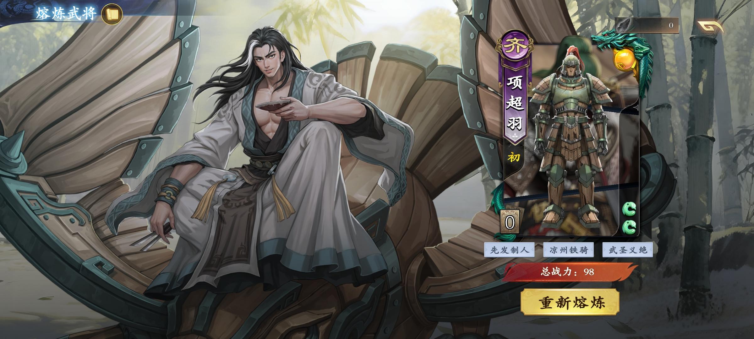 理论上是可以通杀所有BOSS的(未测试),但需要三个人配合,新的龚行天罚因为有属性存在,但熔炼将目前还没有,导致熔炼将必定后手,以前的打法都是默认先手的————————首先就是项梁马超,负责在BOSS回合封禁BOSS技能,加关羽是任意牌当杀的,不用刷牌,可以不加关羽然后就是孙权吕布华佗,负责在BOSS摸牌后发动攻击盖掉BOSS的手牌,这里不用项梁是因为先发制人是在摸牌前发动的,乘马射虎是回合