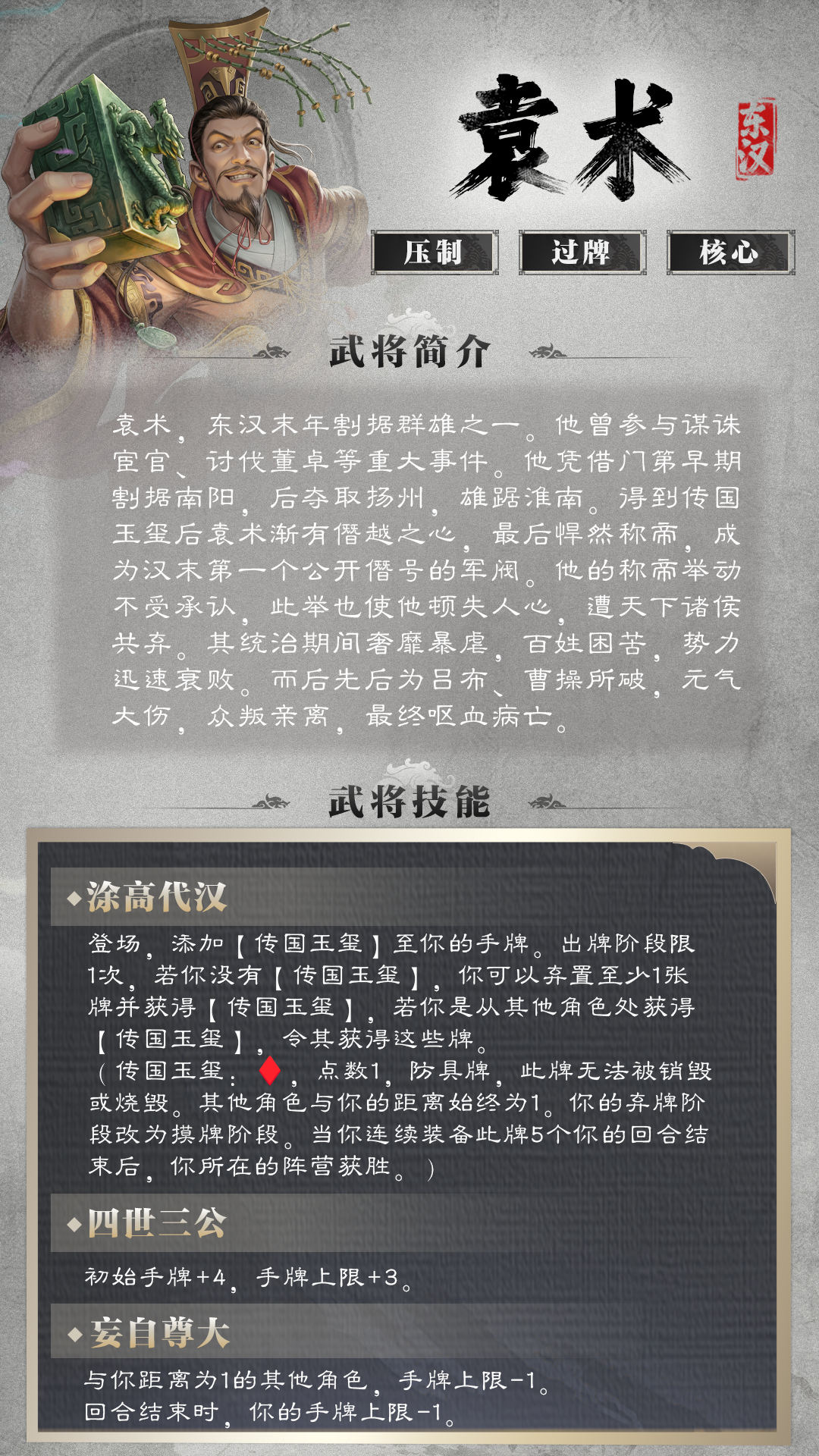 无法反制的特殊装备封闭式杂耍,真的不修改吗???强度方差太大了吧!!!现在张合又多了一个玉玺可以玩,回合内使用白银狮子,道丽马,玉玺,回1血摸4牌,不用弃,然后全塞进军阵结束回合,每回合这么玩,且无法反制。强度完全押在特殊装备上,没有摸到就弱鸡,摸到就是无法反制的自刷,真的是好设计吗???